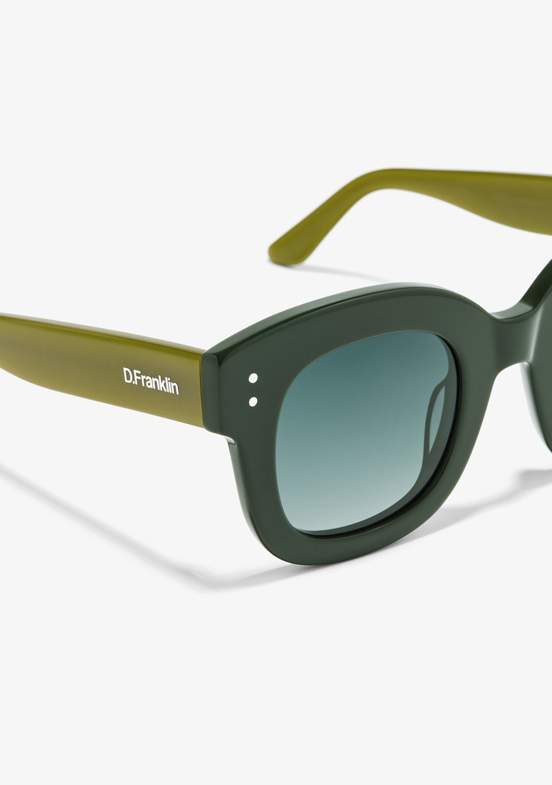 The Holly Green / Gradient Green by D.Franklin stand out for their sophisticated design and advanced functionality. With a frame, bridge, and temples made from acetate, these sunglasses provide durability and a premium feel, ensuring all-day comfort.