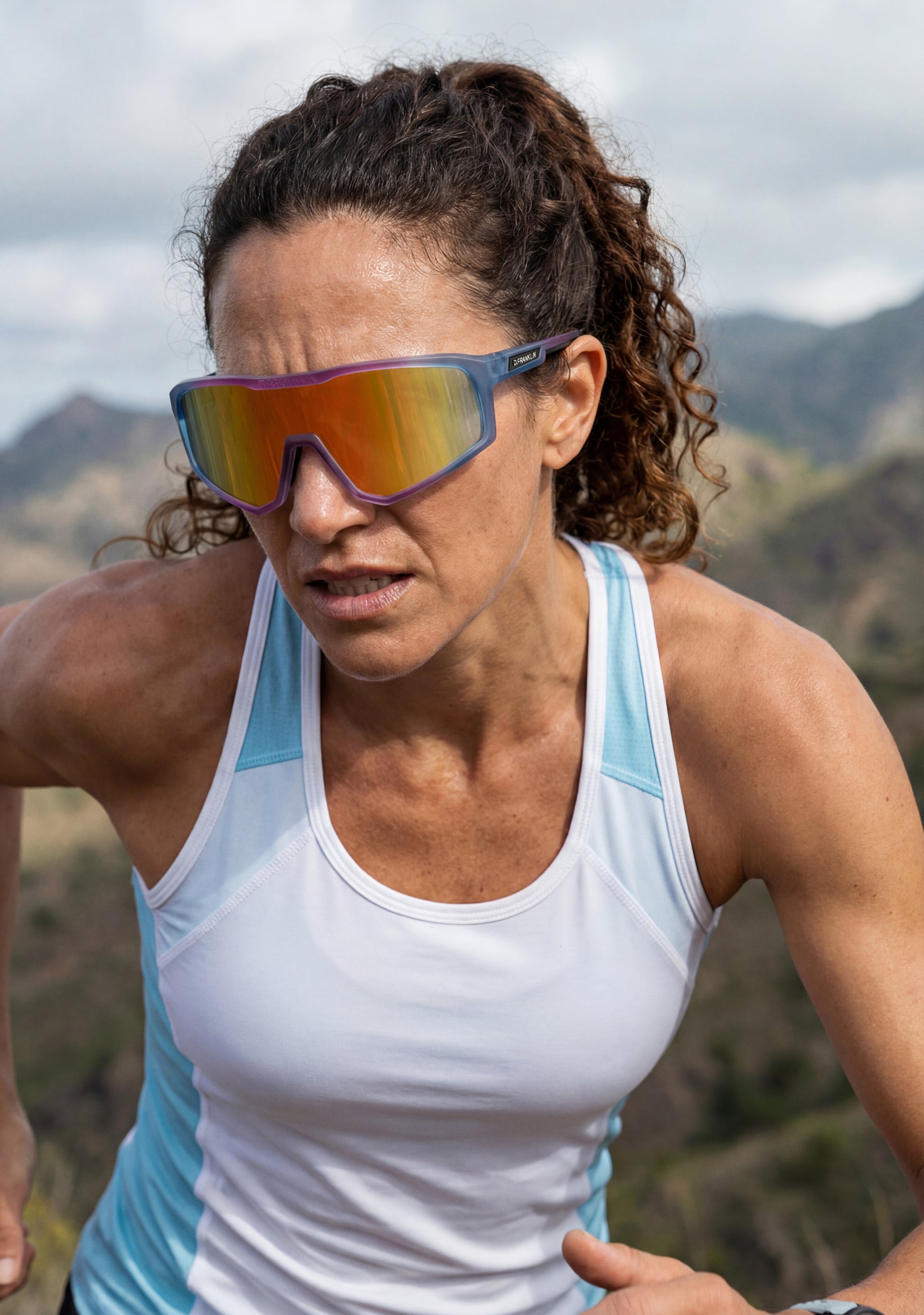 Sport sunglasses with a curvilinear aesthetic. Step into the eye of the storm with a design inspired by the power and speed of hurricanes.