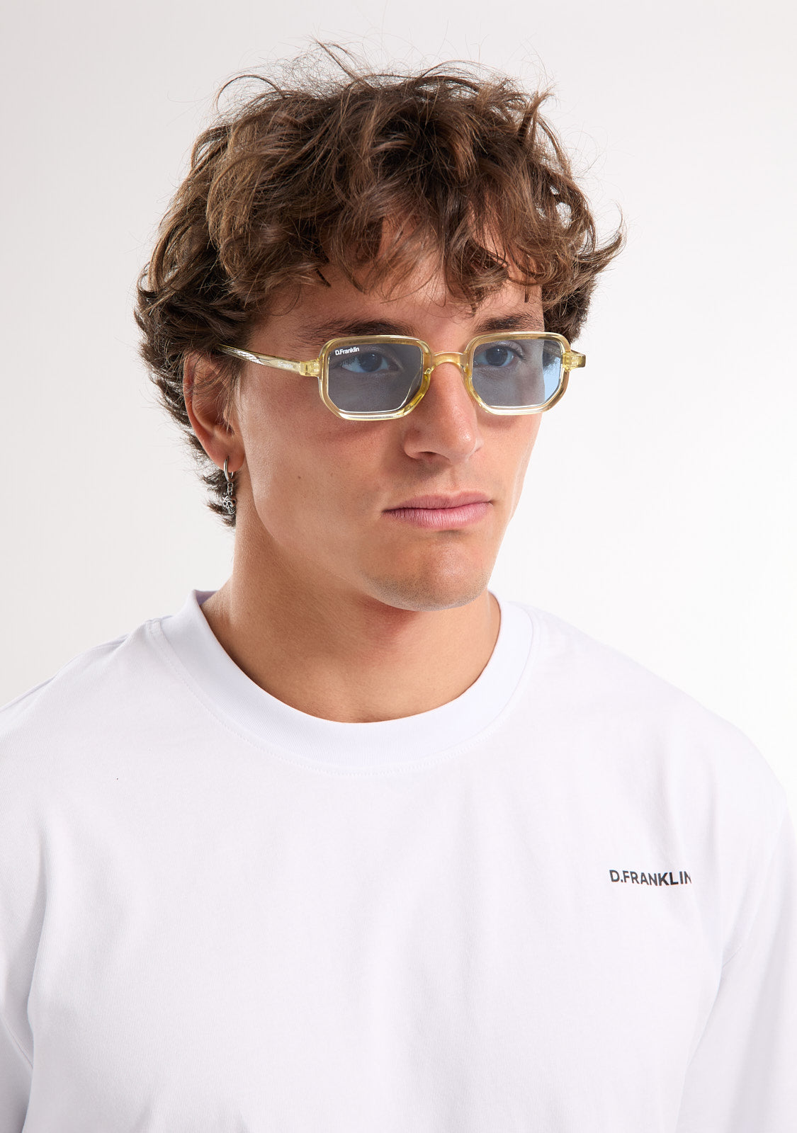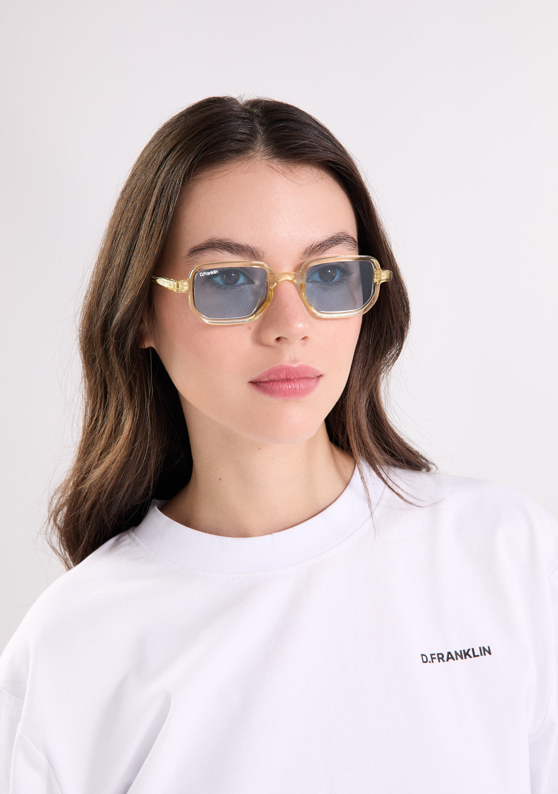 The Jiggy Crystal Amber / Blue sunglasses by D.Franklin combine modern design with high-quality materials, offering comfort and style at every moment. The TR90 front and bridge ensure a lightweight yet durable construction, while the acetate temples provide a comfortable fit and an elegant finish.