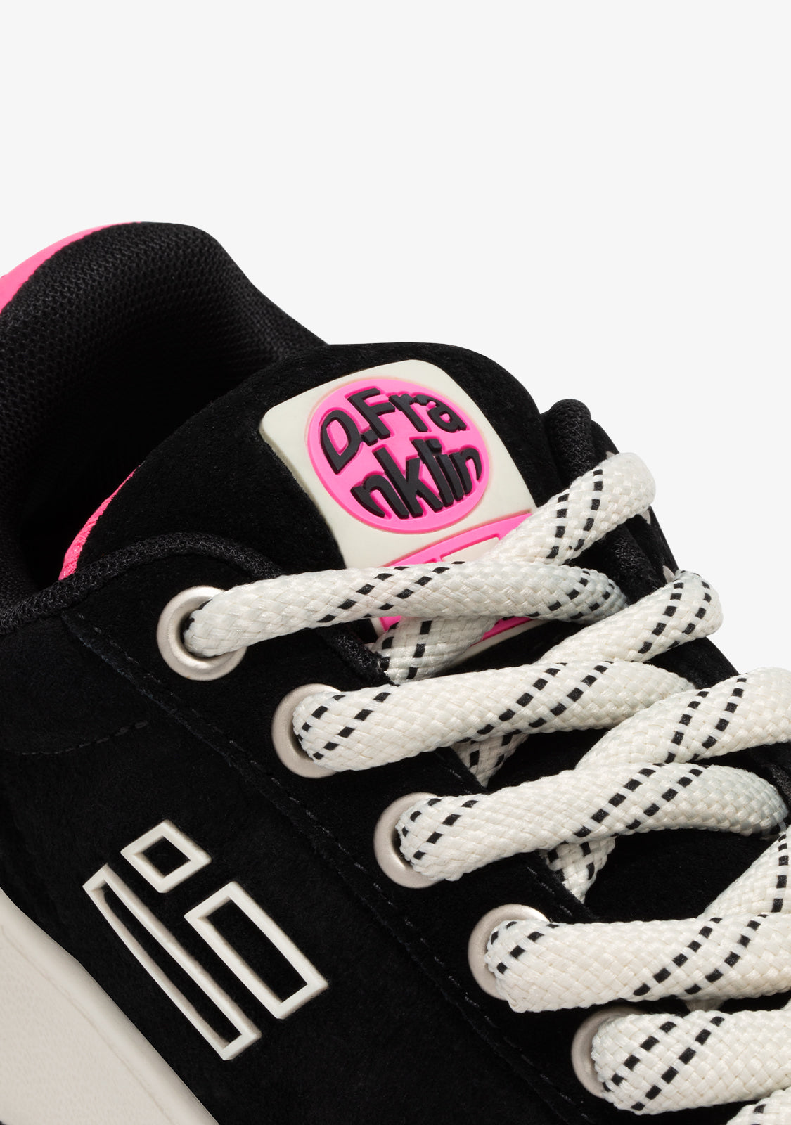 The Key Classic Black by D.Franklin combine sophistication and urban design in a unique model. Crafted from high-quality suede, they offer a smooth and elegant finish that highlights their premium character. The black design is enhanced by an eye-catching pink detail on the heel, adding a modern and bold touch.