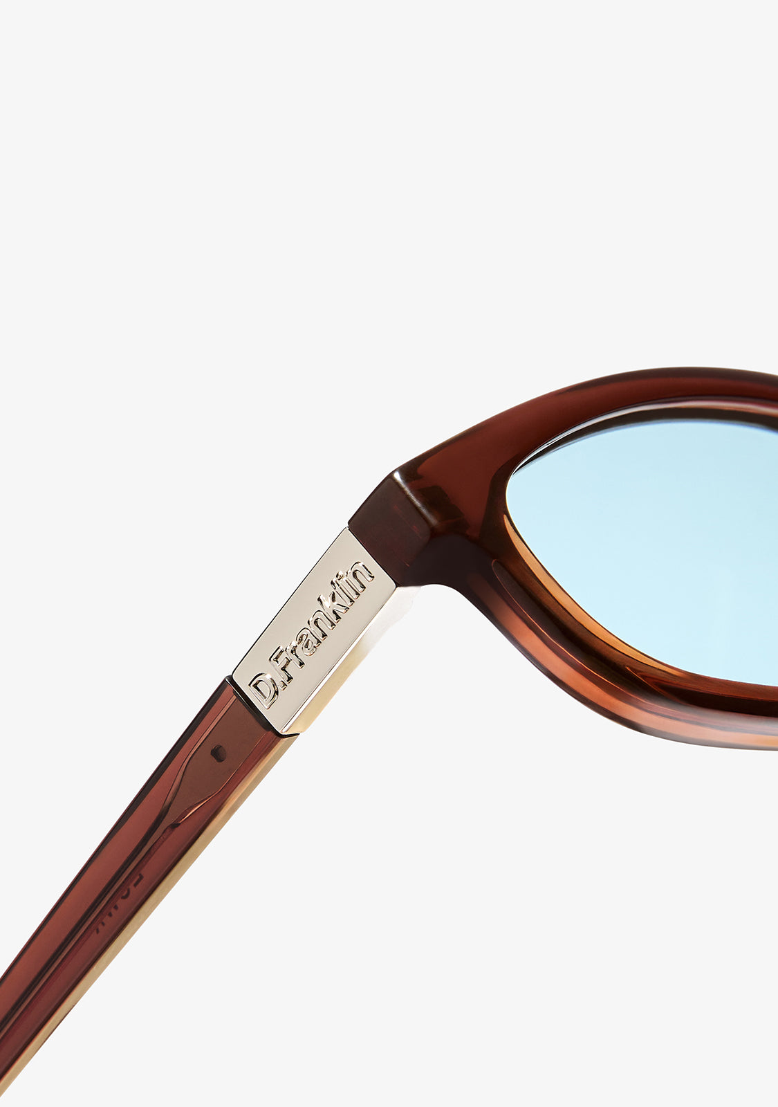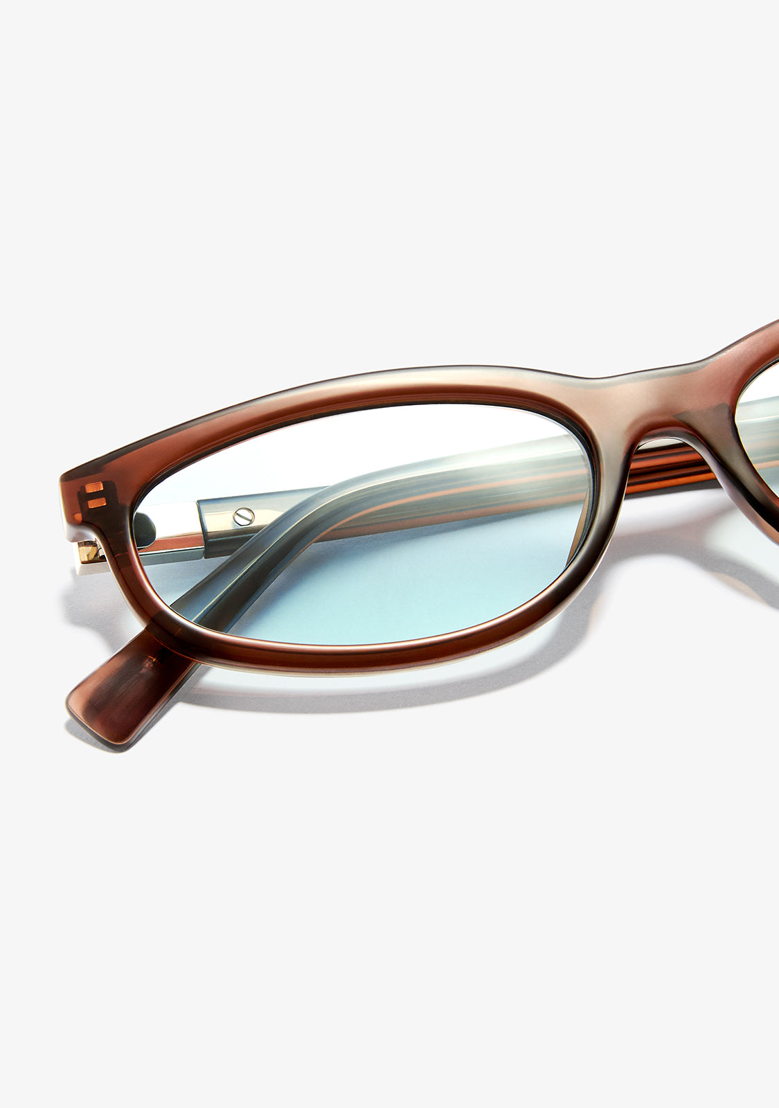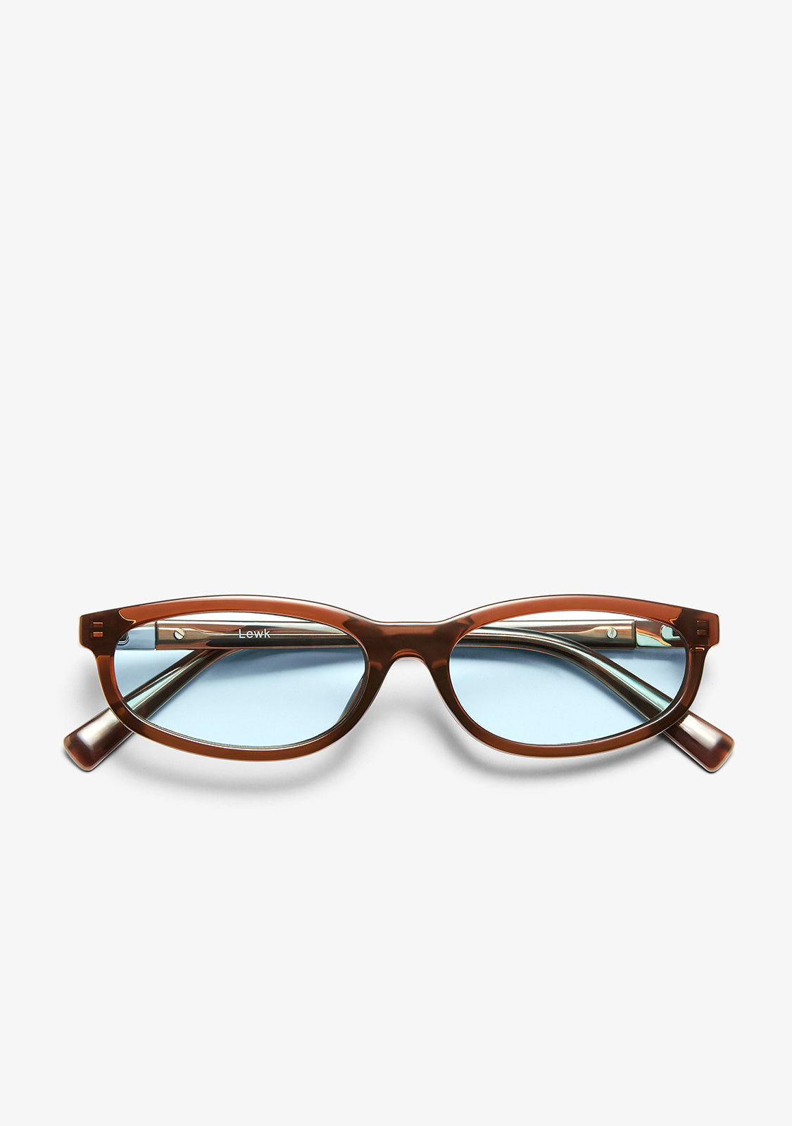 Sunglasses with cat-eye frames that feature lifted corners and a defined top line for a sharp, feminine silhouette. The new Lewk Brown / Blue blends classic tortoise tones with light blue lenses, delivering a timeless design with a modern twist for everyday versatility.