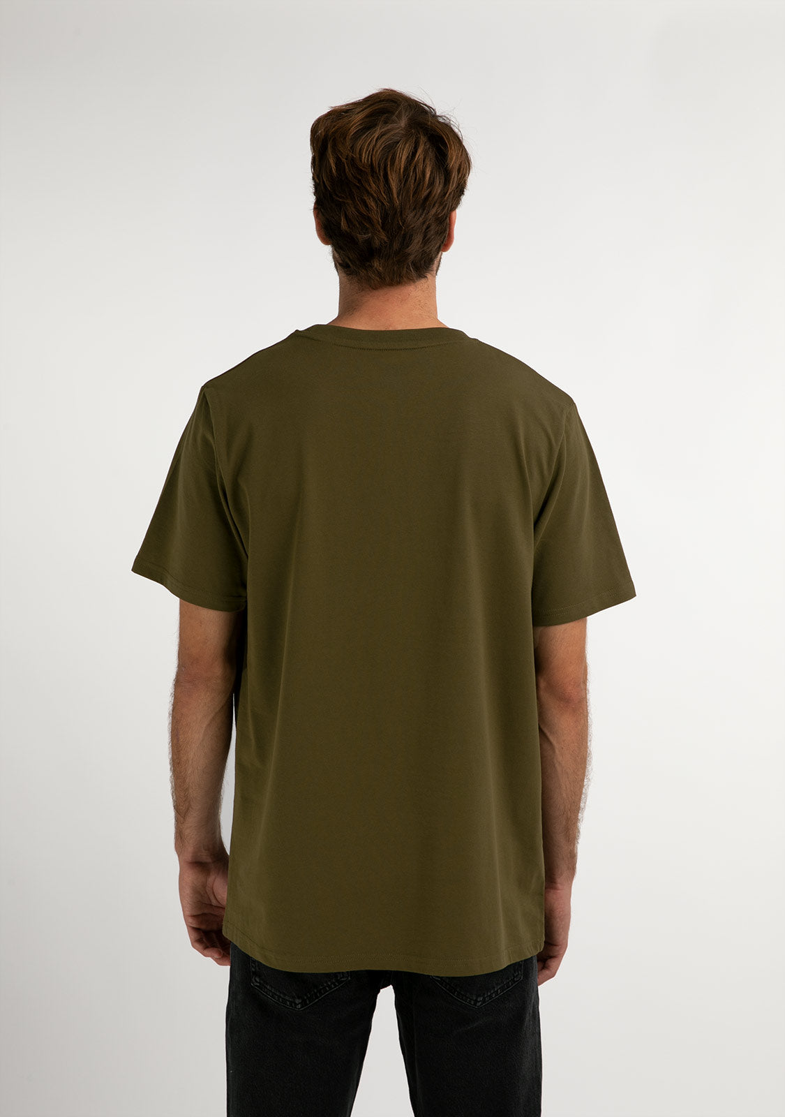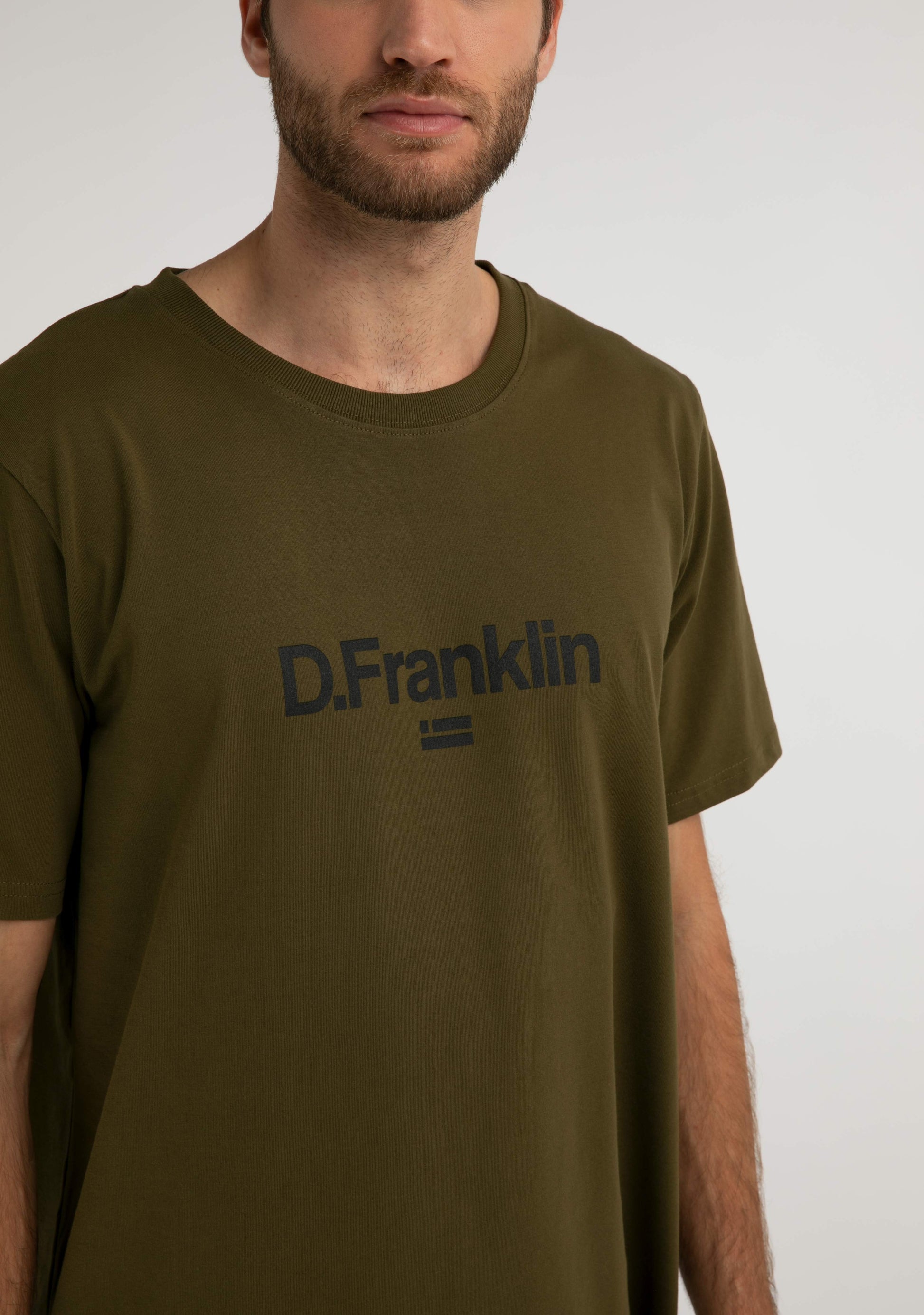 Khaki T-shirt that simplifies the D.Franklin iconography with the logo and emblem of our brand on the chest in black. Round neck with double stitching. Made from 100% organic cotton.