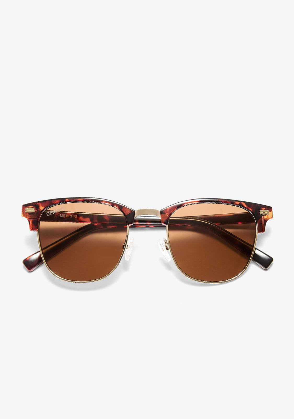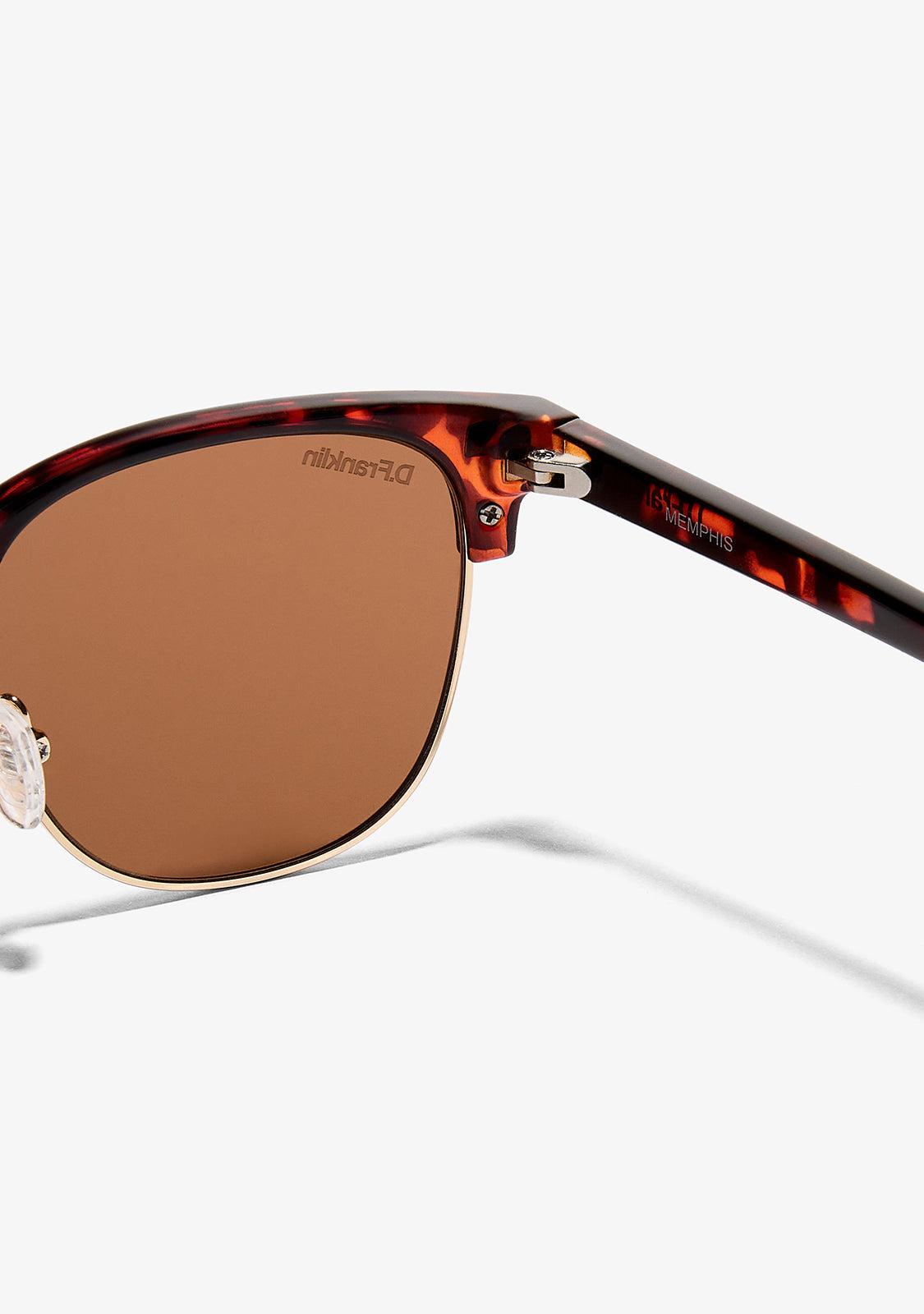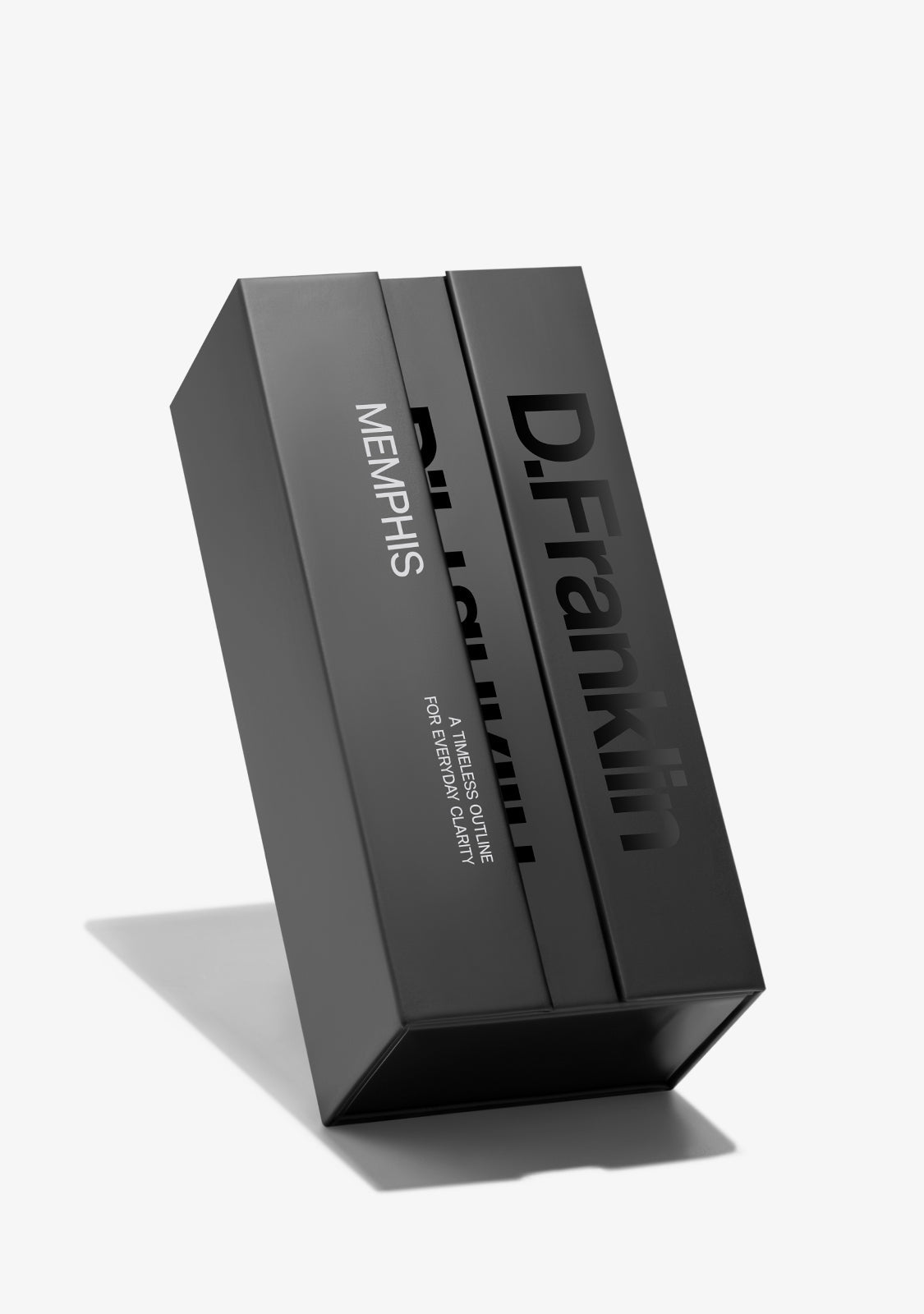 Memphis in Tort is a retro-inspired silhouette updated with clean, modern lines. Finished with signature D.Franklin touches, including the logo engraved on the temples and the emblem on the lens.