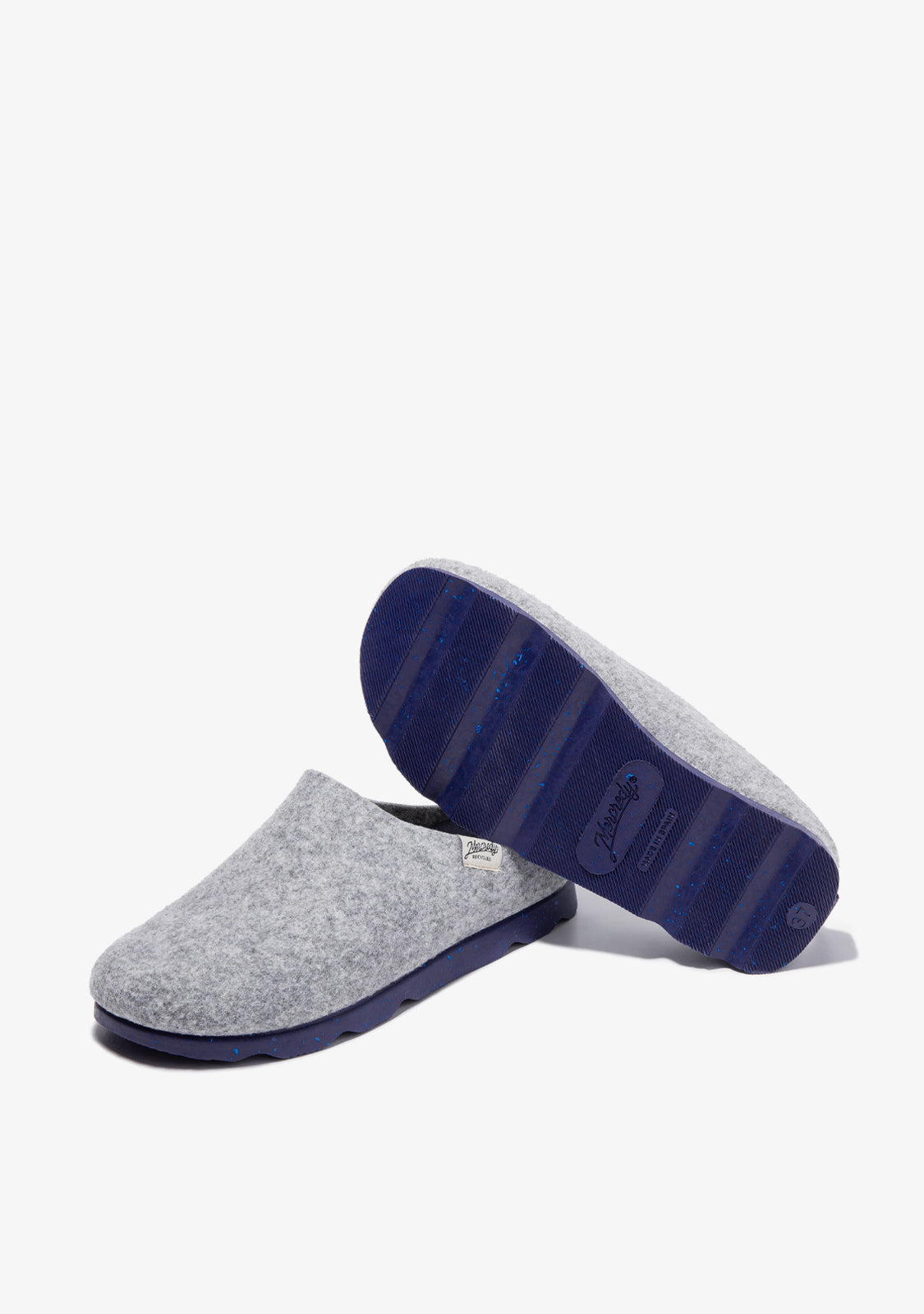 Protect yourself from the cold with this design made from reusable materials. Its recycled PET felt upper features a grey hue with small navy accents. The contrasting sole is designed with two-tone natural rubber made from recycled particles.