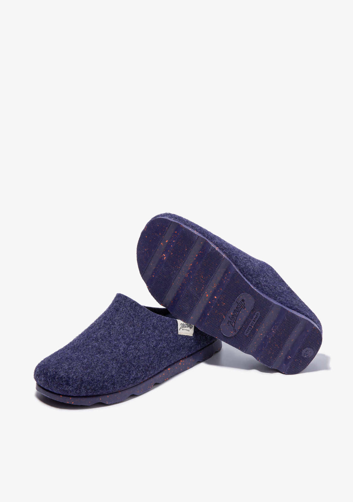 Protect yourself from the cold with this design made from reusable materials. Its recycled PET felt upper features a navy hue with small orange details. The contrasting sole is designed with two-tone natural rubber made from recycled particles.