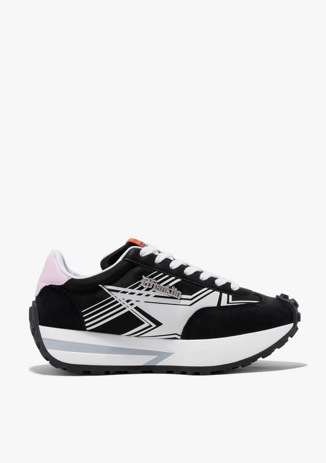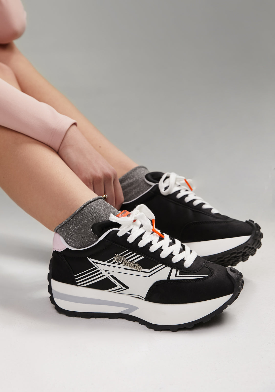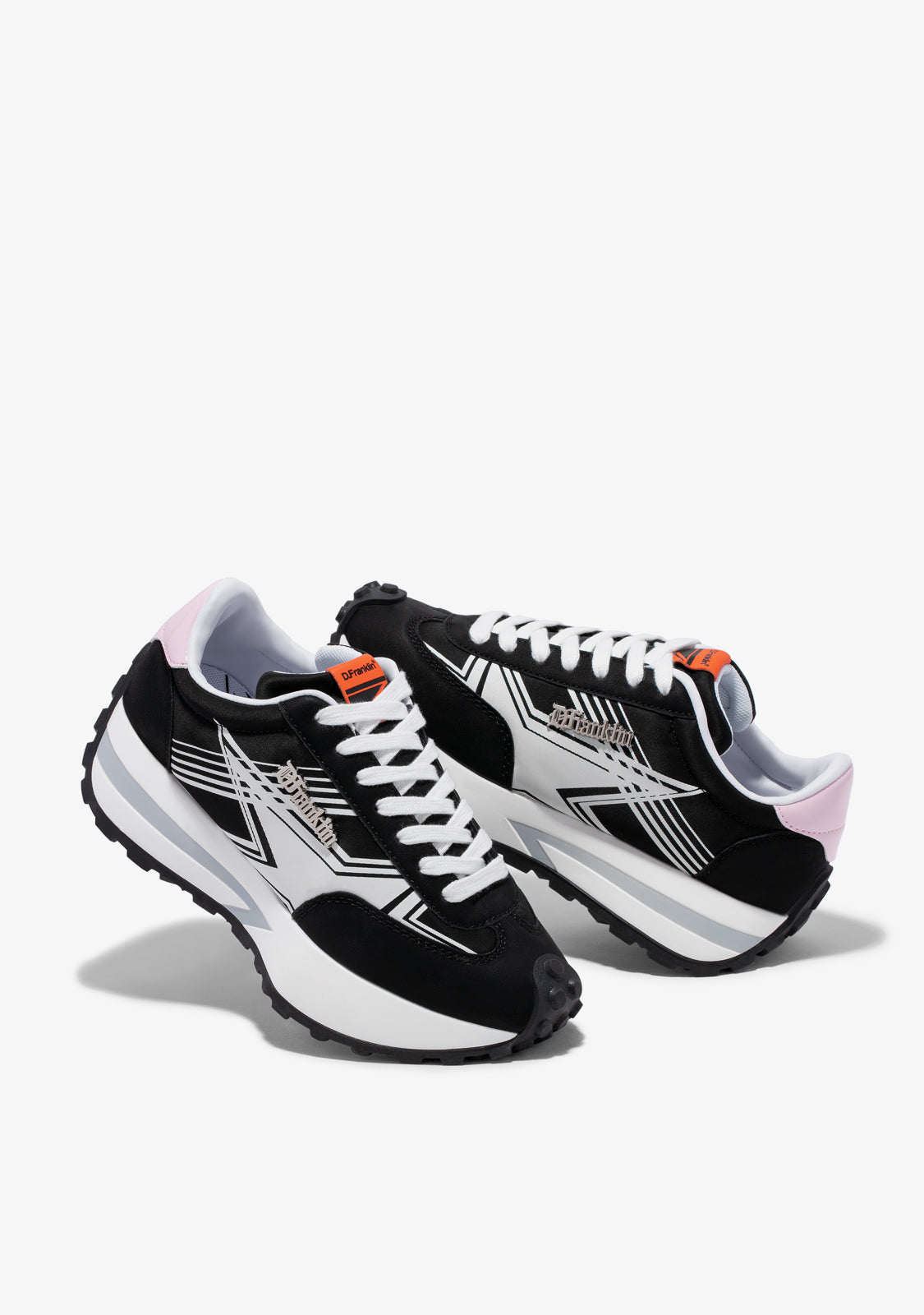 Sneaker inspired by the rhythm of the city. On-trend design constructed from cruelty-free materials. White star print on the side. Plated metal D.Franklin detail. 4 cm white platform. Special TR slip-resistant sole in black.