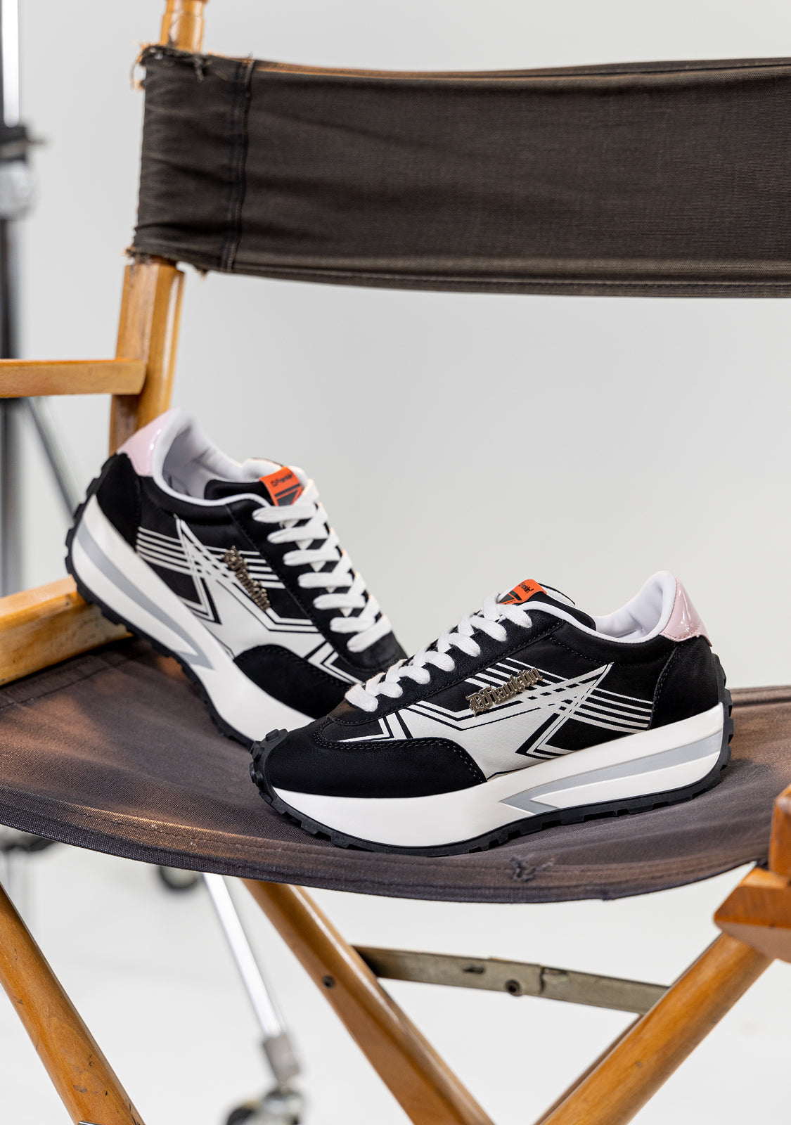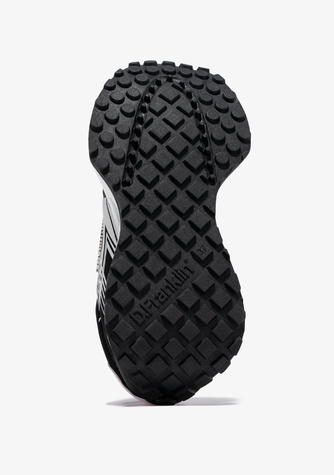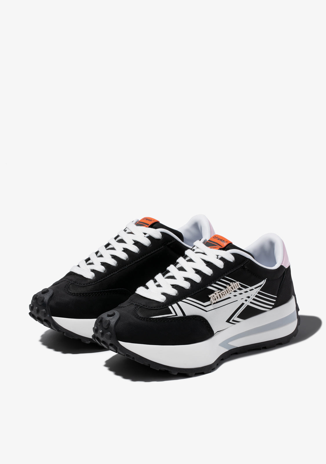 Sneaker inspired by the rhythm of the city. On-trend design constructed from cruelty-free materials. White star print on the side. Plated metal D.Franklin detail. 4 cm white platform. Special TR slip-resistant sole in black.