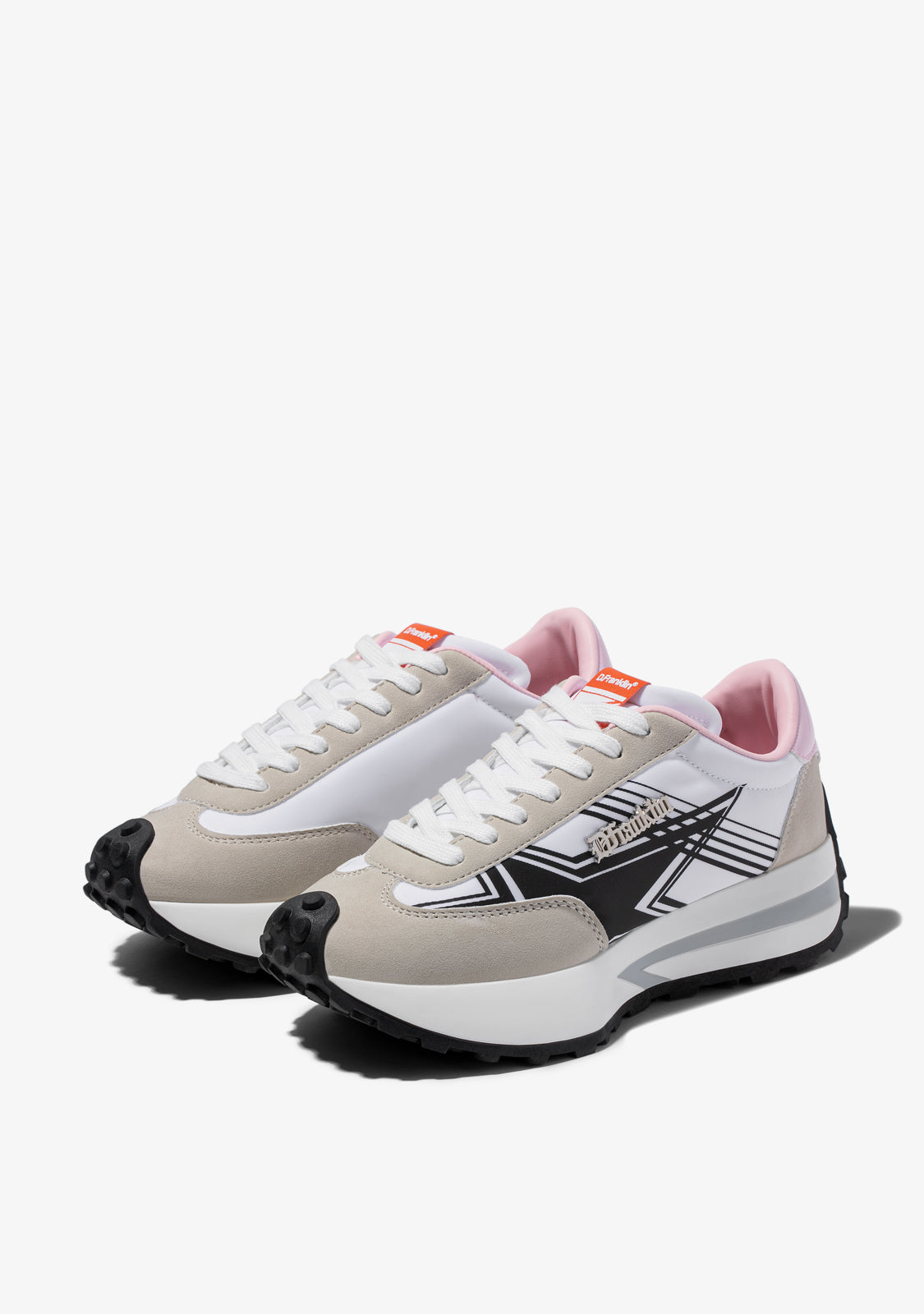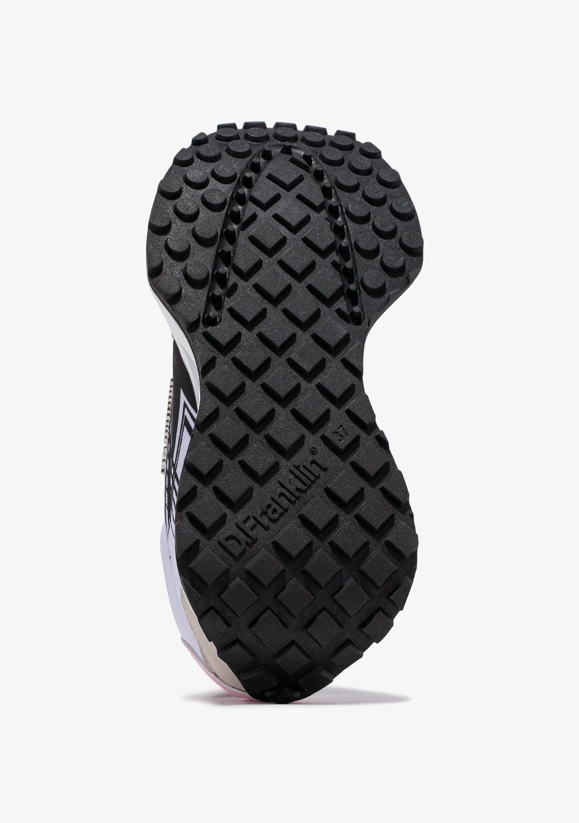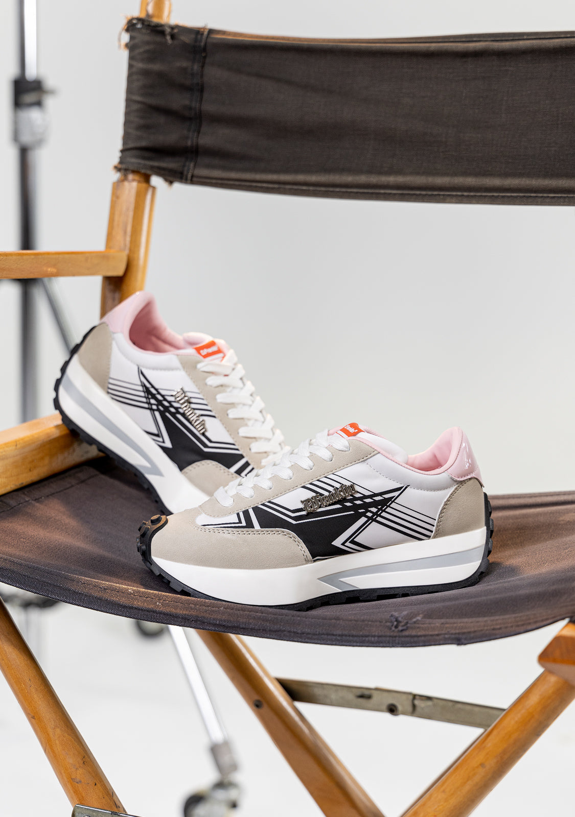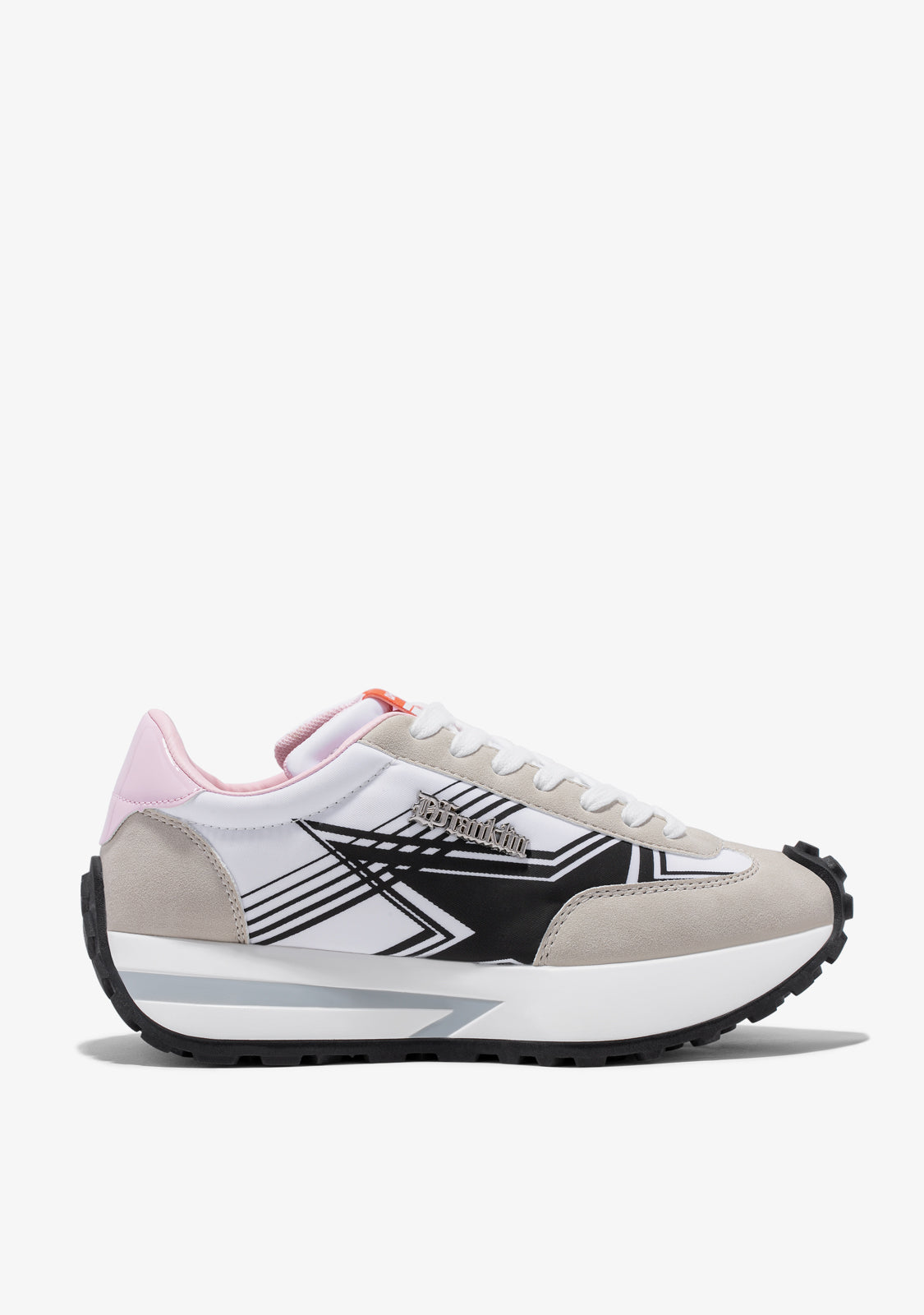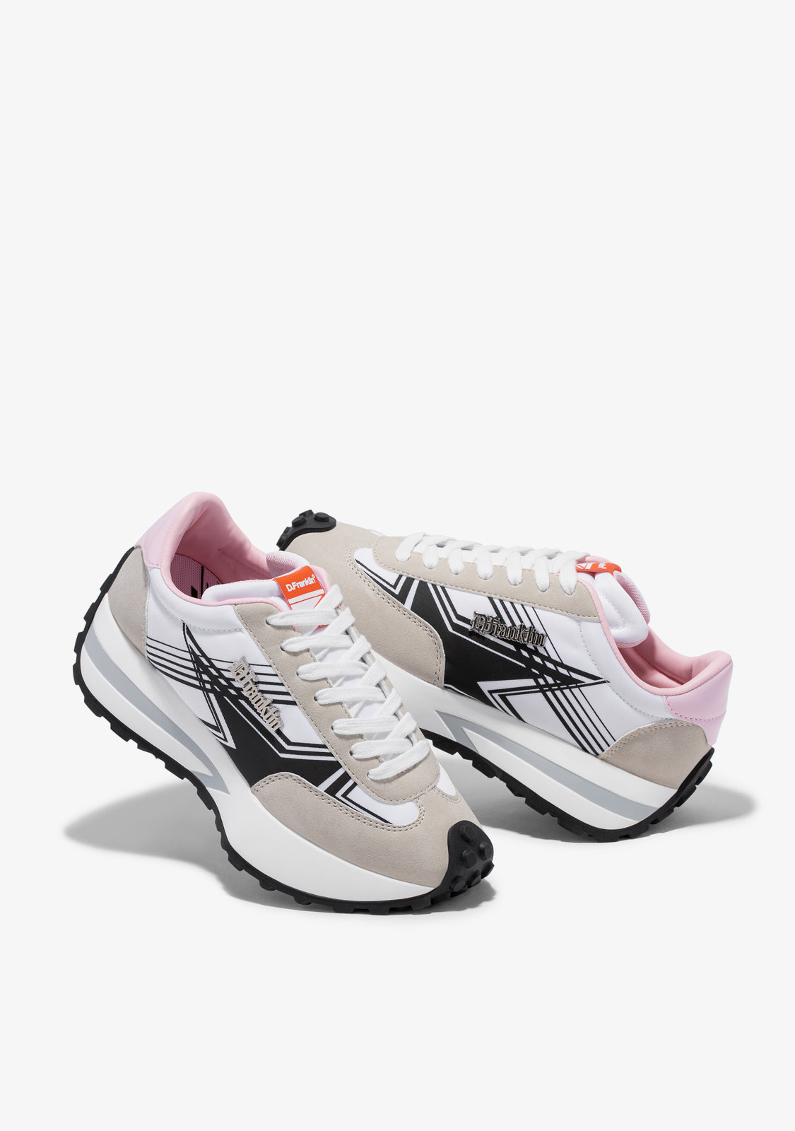 Sneaker inspired by the rhythm of the city. On-trend design constructed from cruelty-free materials. Black star print on the side. Plated metal D.Franklin detail. 4 cm white platform. Special TR slip-resistant sole in black.