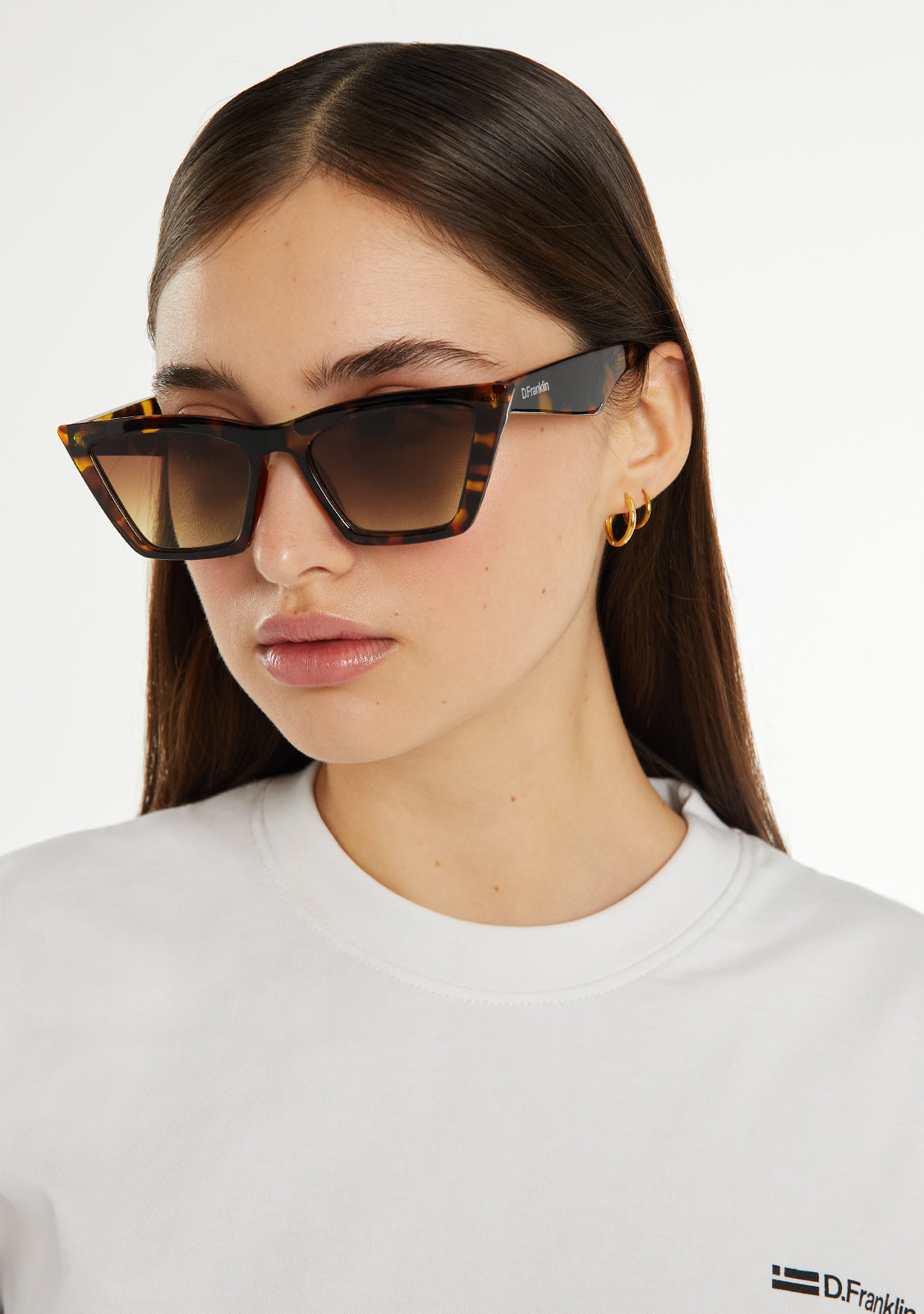 Sunglasses with clear cat-eye frames. A timeless design for your most distinctive looks.