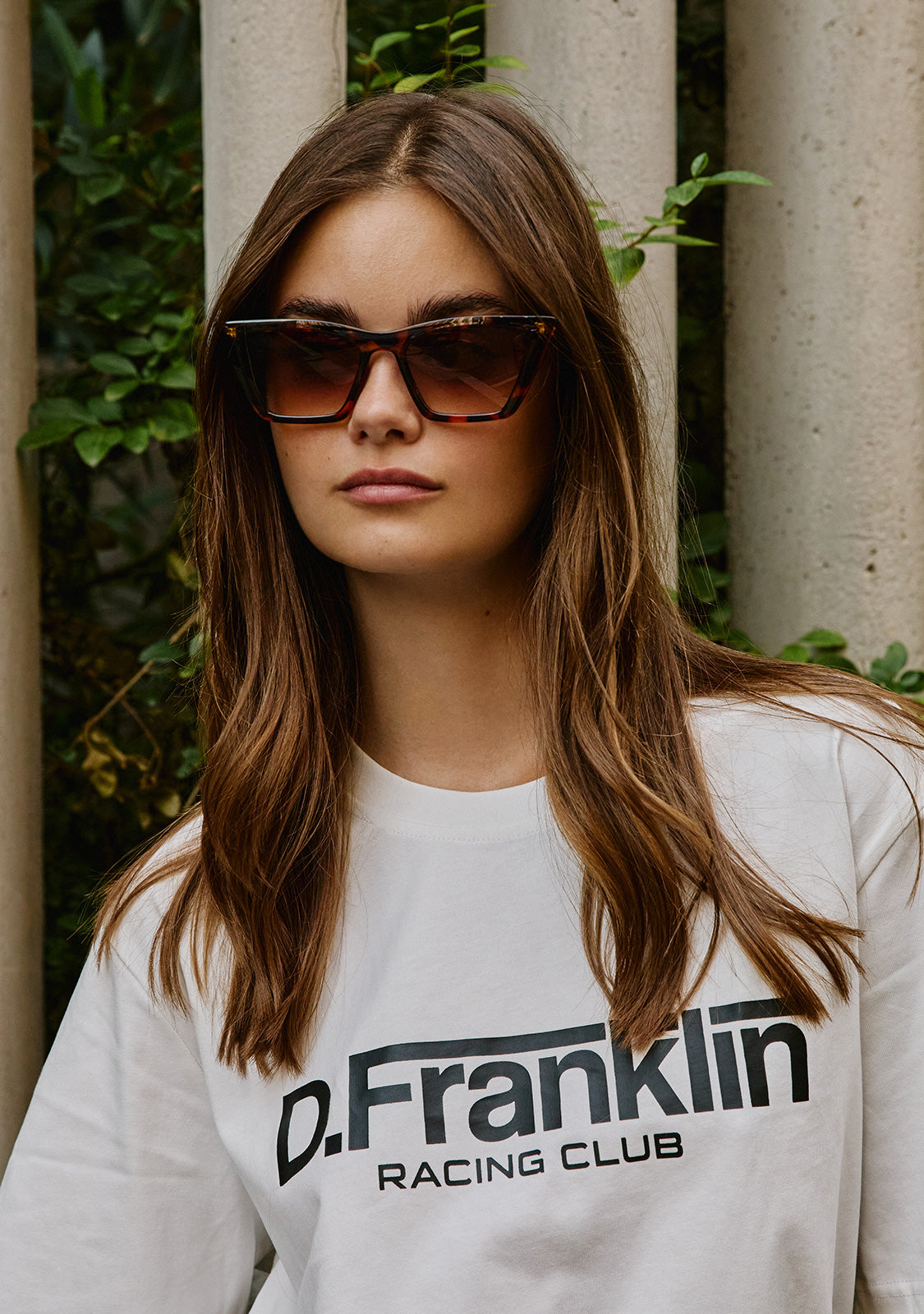 Our Monaco model in brown tones features the most distinctive D.Franklin details, the logo engraved on the temples and emblem on the lens. The lens width is 55 mm and the front is 152 mm. The side temples are 150 mm long, perfect for all faces.