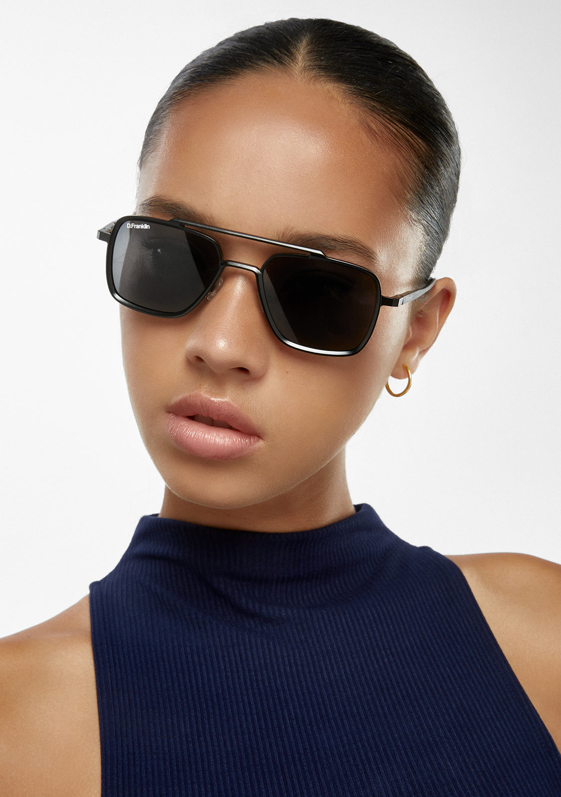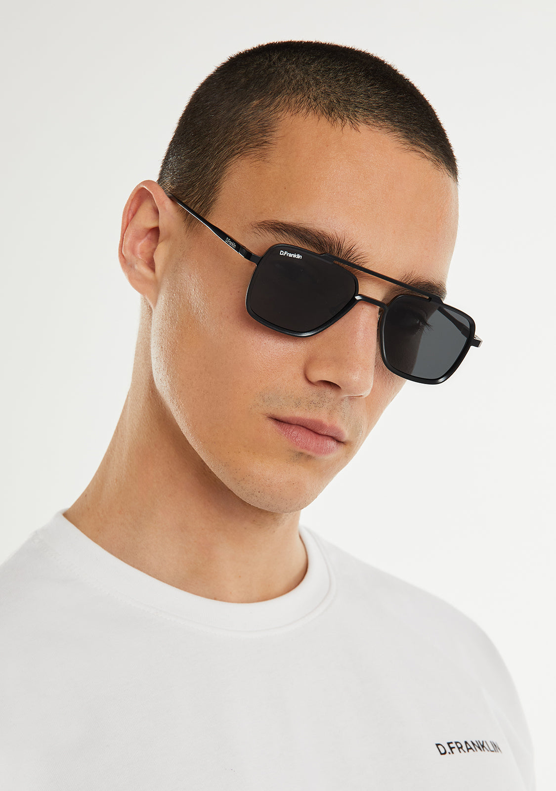 A reinterpretation of an iconic style. We updated the spirit of the unmistakable aviator model with a design that is essentially rectangular. Its silhouette features a frame with straight lines and precise angles that frame the eye in a bold way. The unisex design is designed to create a unique and innovative aesthetic.