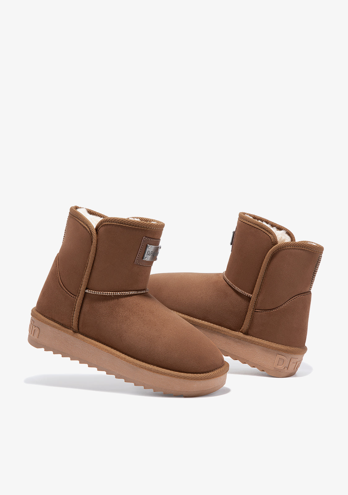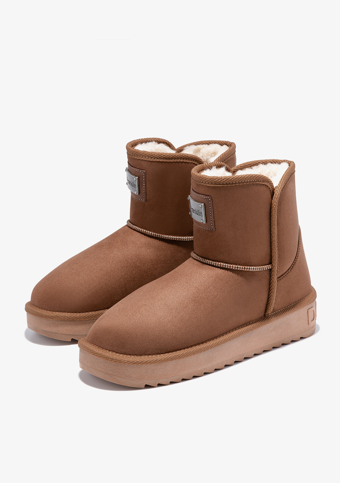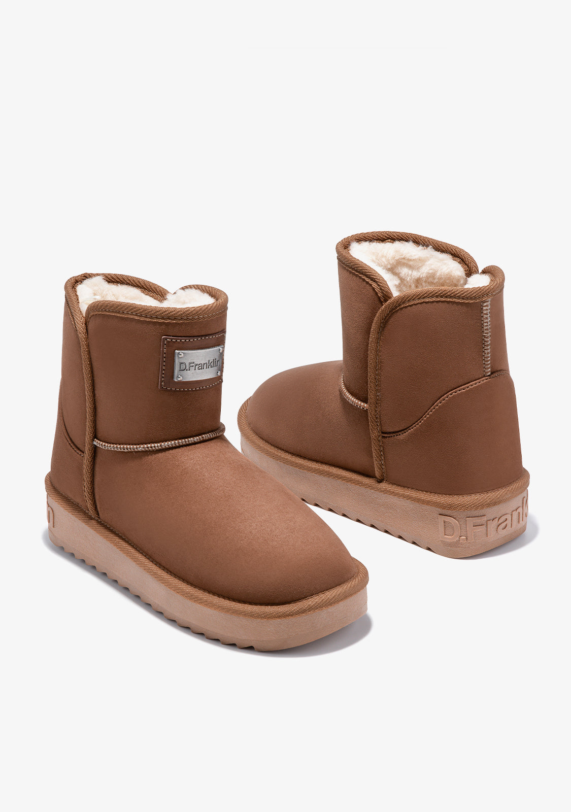 These low-cut camel boots feature high-quality water-repellent microfiber fabric. The redesigned sole provides a lighter weight for a more comfortable ride. They also feature our custom heel badge and contrasting sole. In addition, its synthetic fur lining gives it the ultimate winter touch.