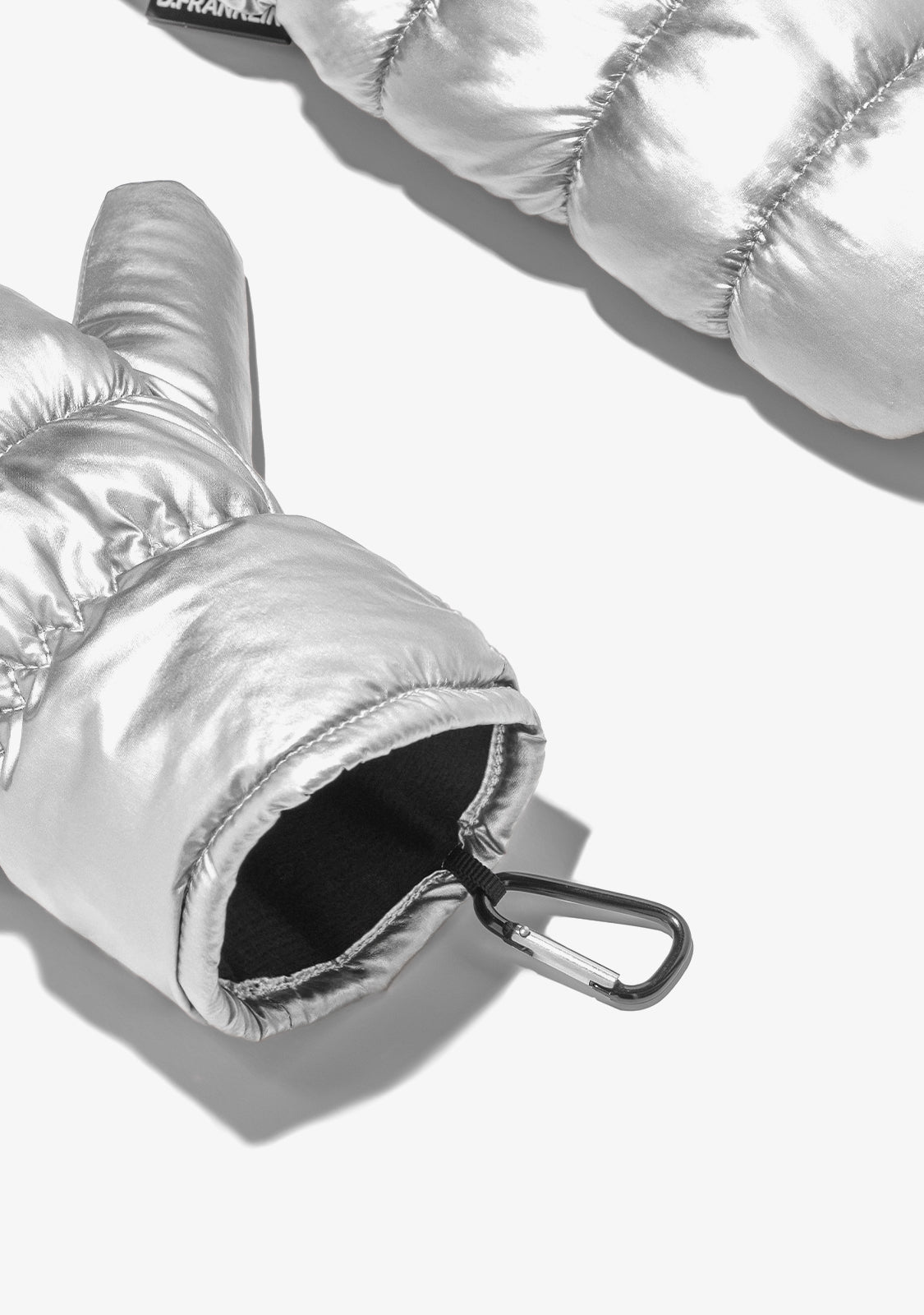 We're going Nordic with this silver-tone model with a quilted textured finish. It also features water-repellent fabric and our emblem on the outer black label.