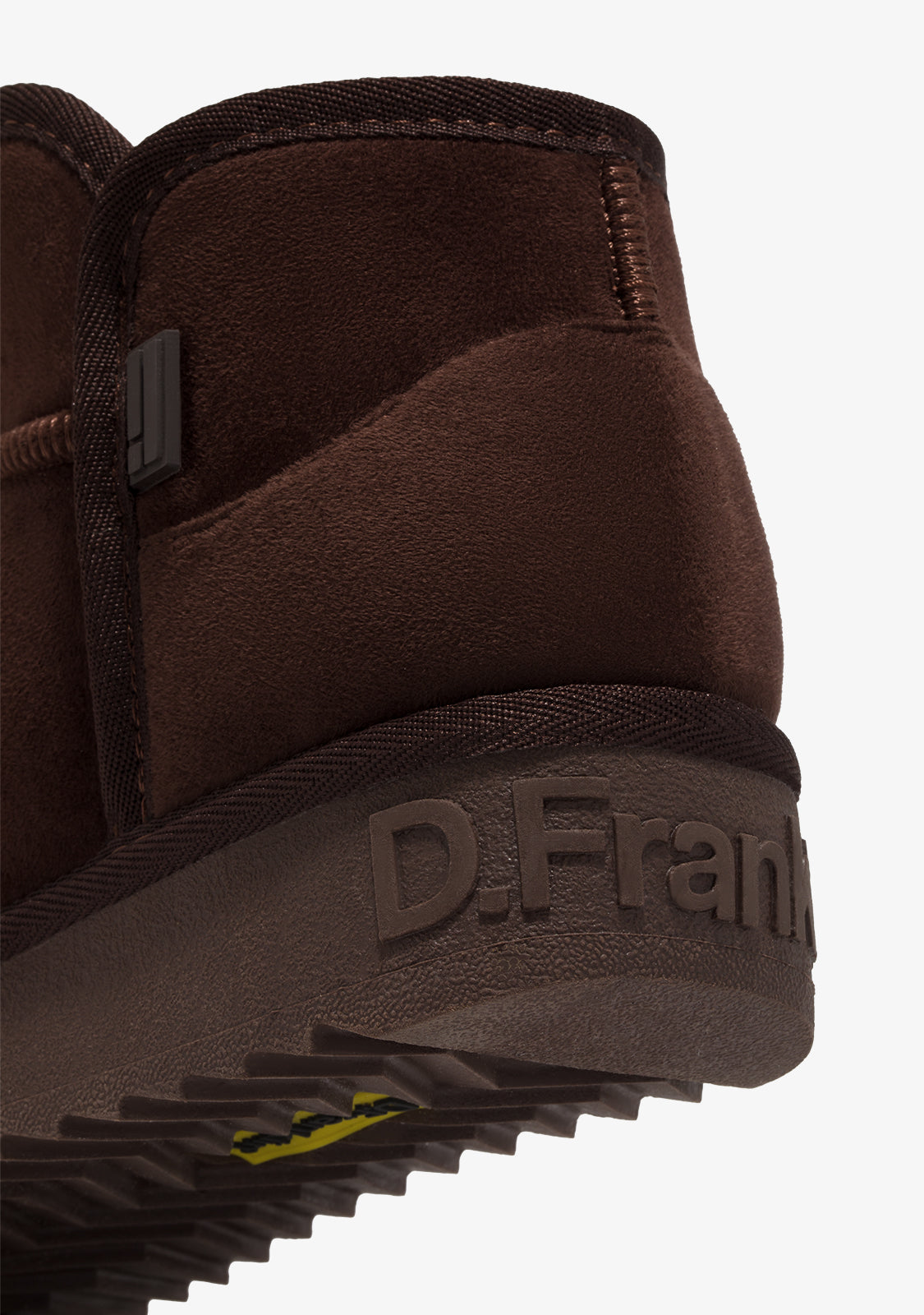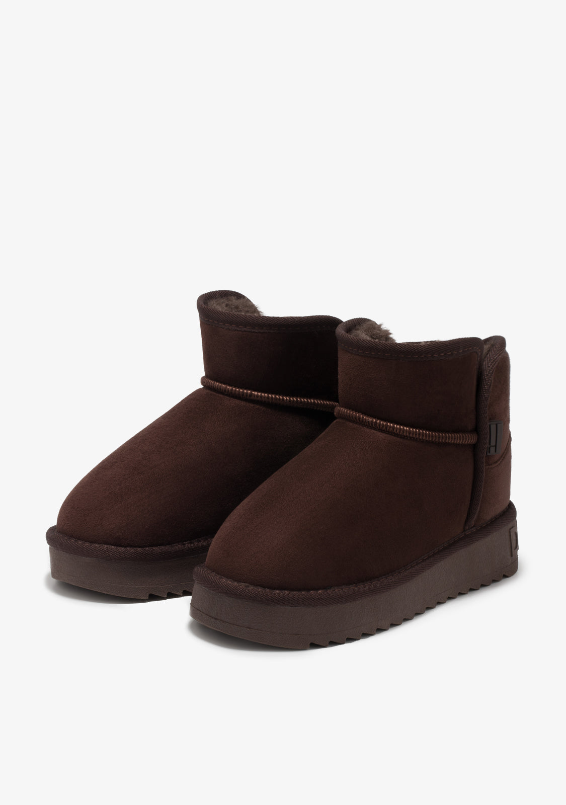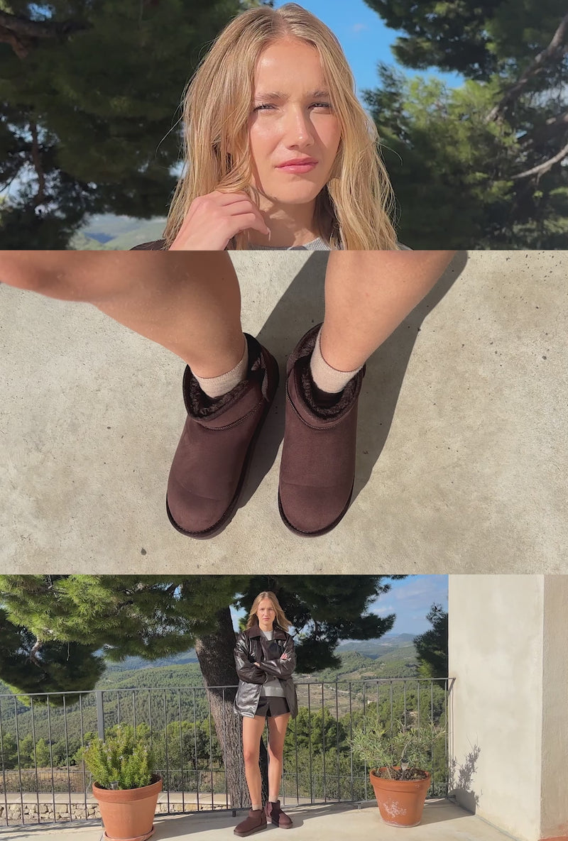 Asymmetrical cut design in chocolate tone and synthetic inner lining for superior warmth.