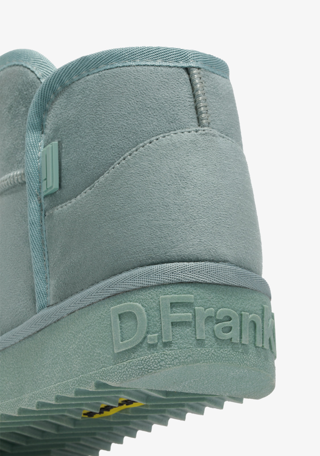 The asymmetric cut in soft green tones merges functionality and style, while the premium synthetic fur lining ensures exceptional warmth and softness with every step.
