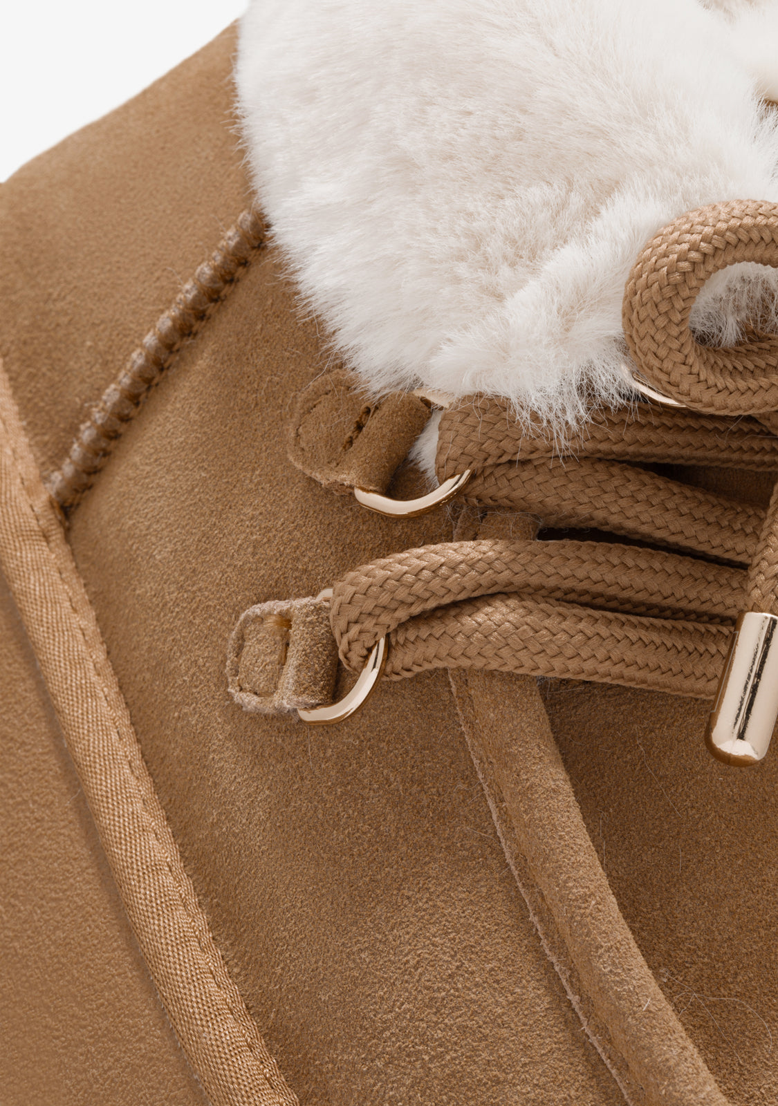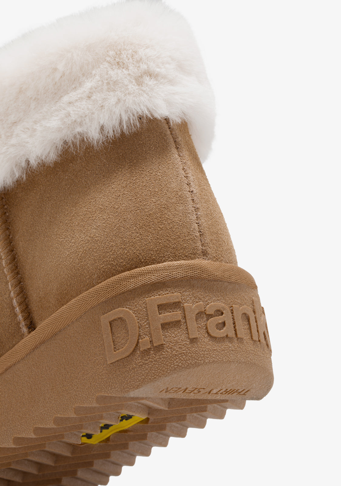 The Nordic Mid Fur Tan by D.Franklin combine a comfortable and elegant design in a warm tan tone, perfect for those seeking warm and functional footwear for winter. The 80% cow suede and 20% polyester exterior provides resilience and softness, while the 100% polyester lining and 100% polyester insole ensure a comfortable fit throughout the day.