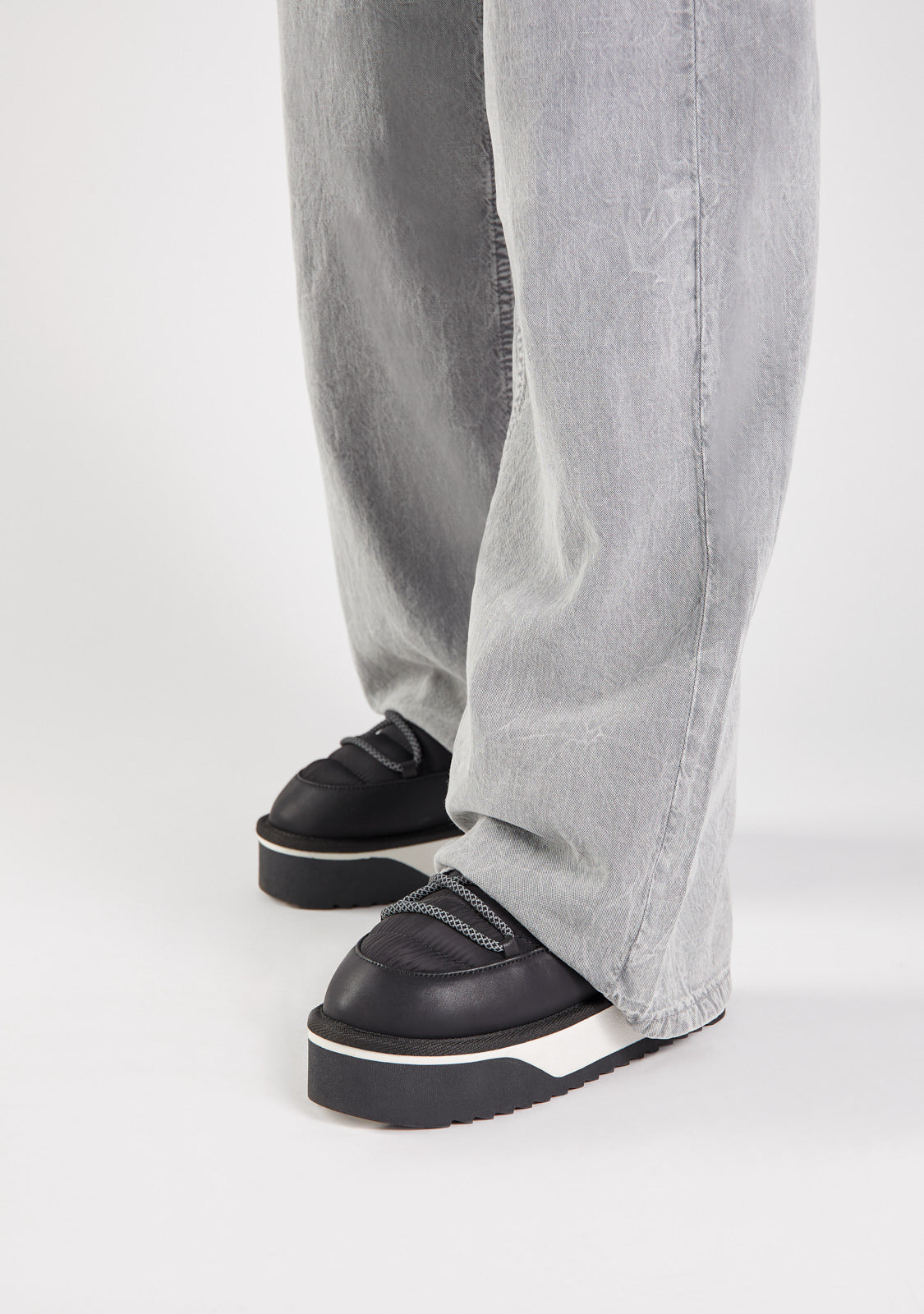 We define cold days with a warm and distinctive piece. This model is made with high-quality, lightweight, and flexible fabrics. Its double-height sole provides great comfort. Additionally, it features our custom emblem on both the heel and the side. Its black laces ensure a perfect fit and support and include reflective details.