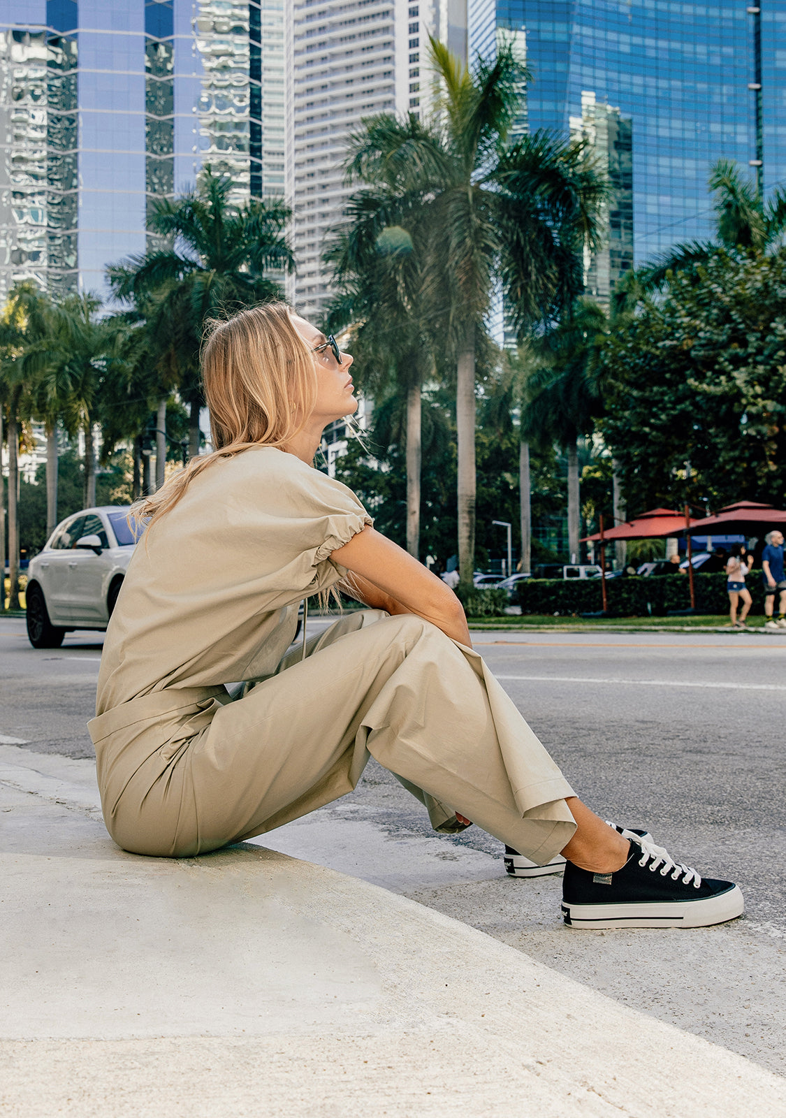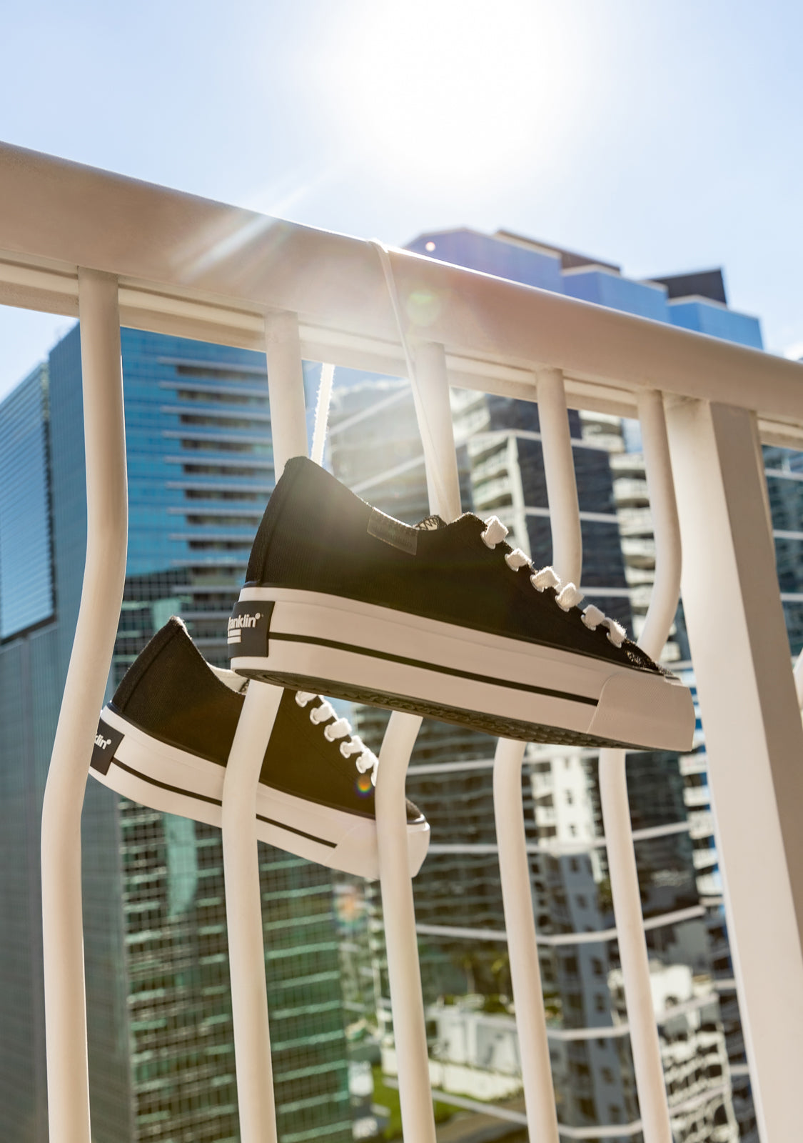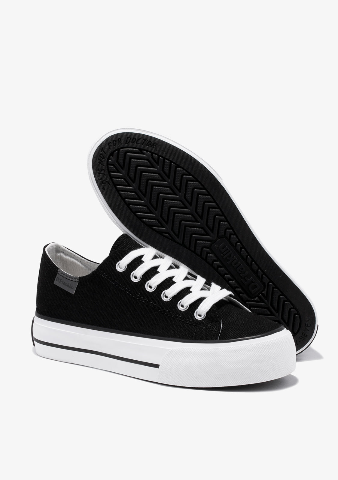 A new way to create your path. Inspired by the classic One Way low-cut trainer, with a timeless essence. Designed with recycled textile in black. Constructed with an extra-light 4cm white sole. Black embossed logo at heel. White cotton laces with white laces on top of white laces.