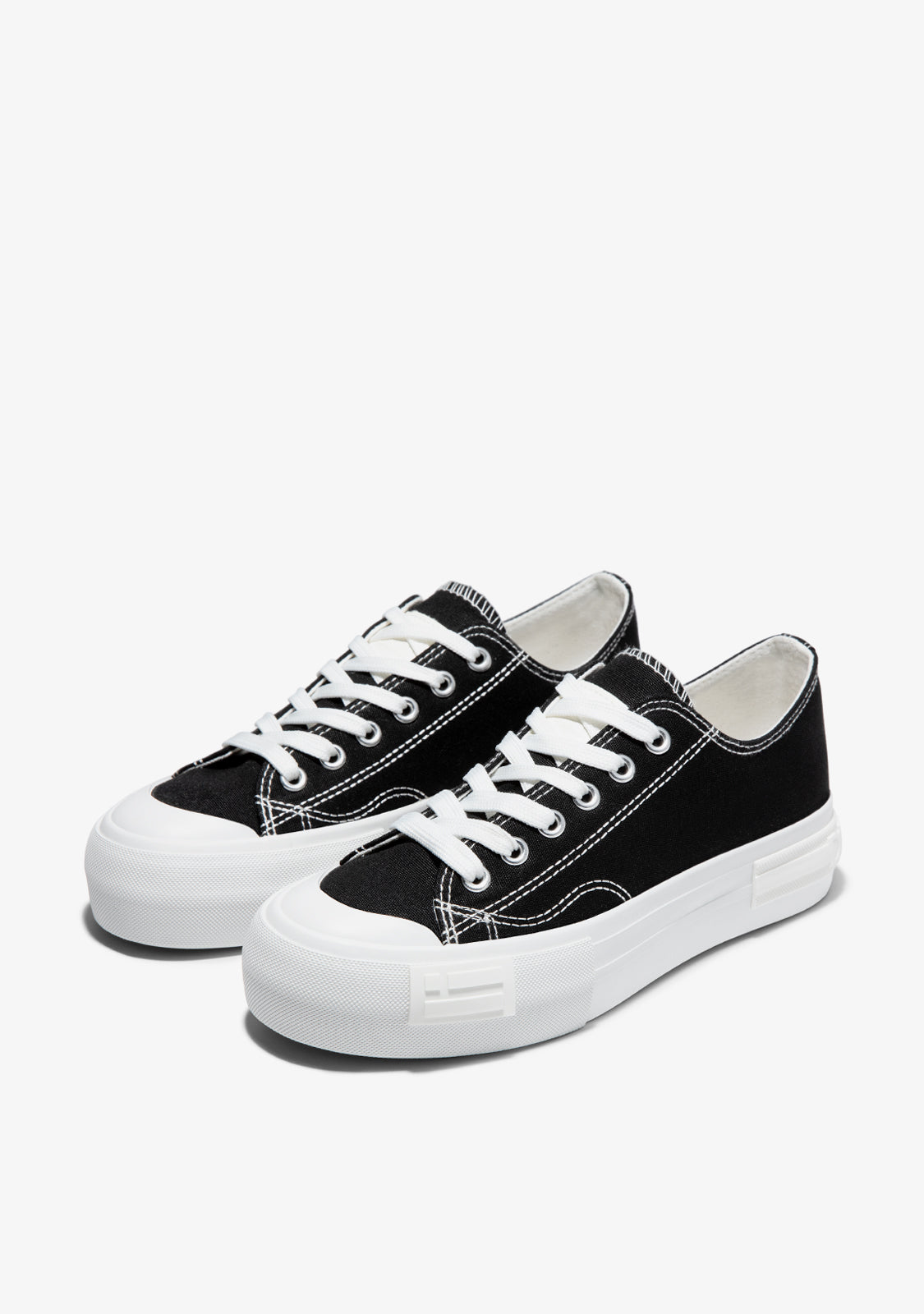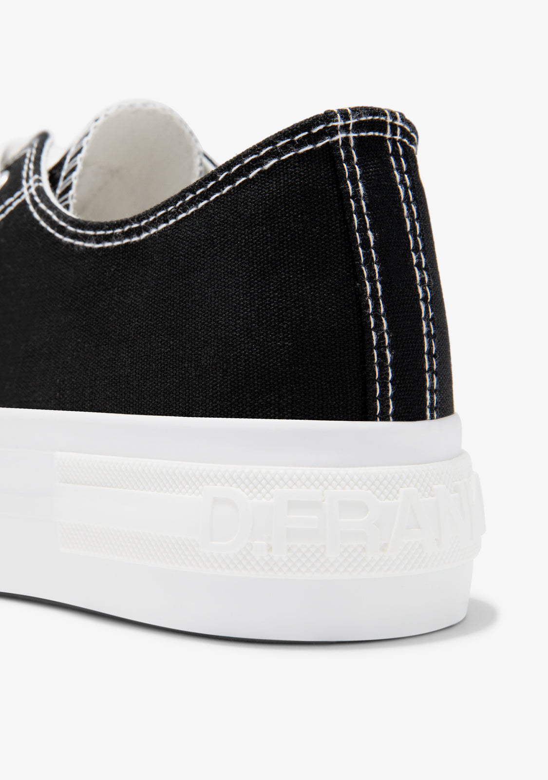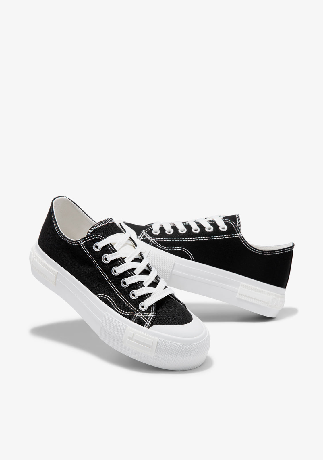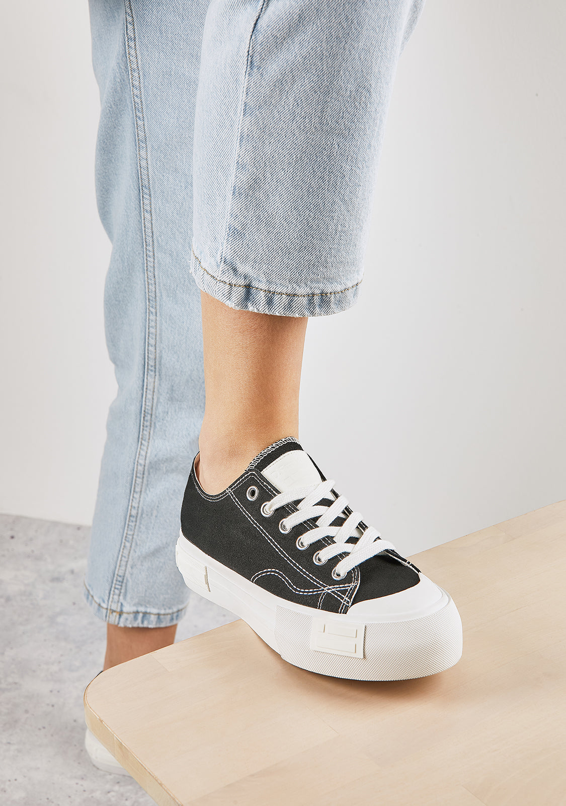 Our black One Way designis made of canvas textile . White rubber sole and custom lettering on the heel. Featuring a 4cm height and our flag emblem on the side.