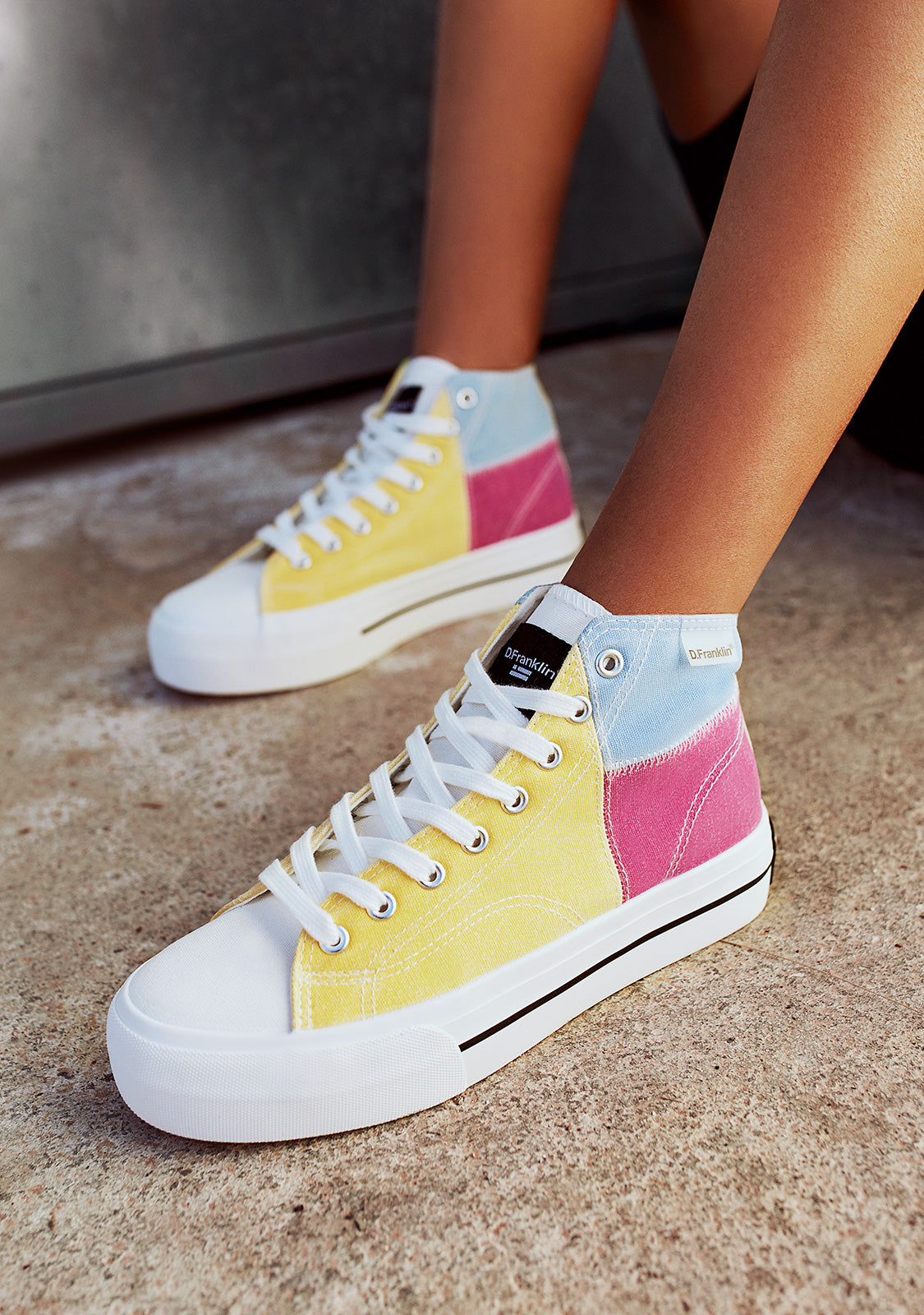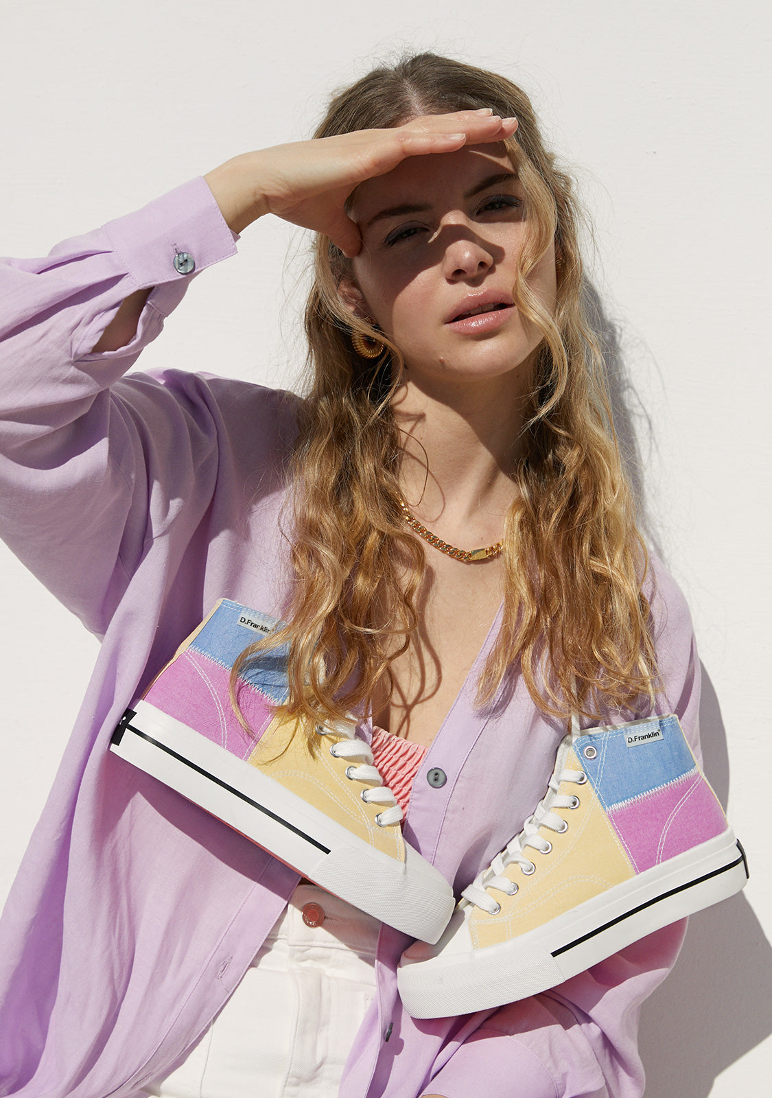 The One Way limited edition is inspired by the most casual collections, combined with the personality and the most marked style of D.Franklin®. The One Way Multi UV are the perfect Hi-top sneakers for all kinds of new roads. A street style model that combines current trends with original details of its materials. Made of white canvas, their appearance changes completely under the sunlight, bringing out their most colorful side.