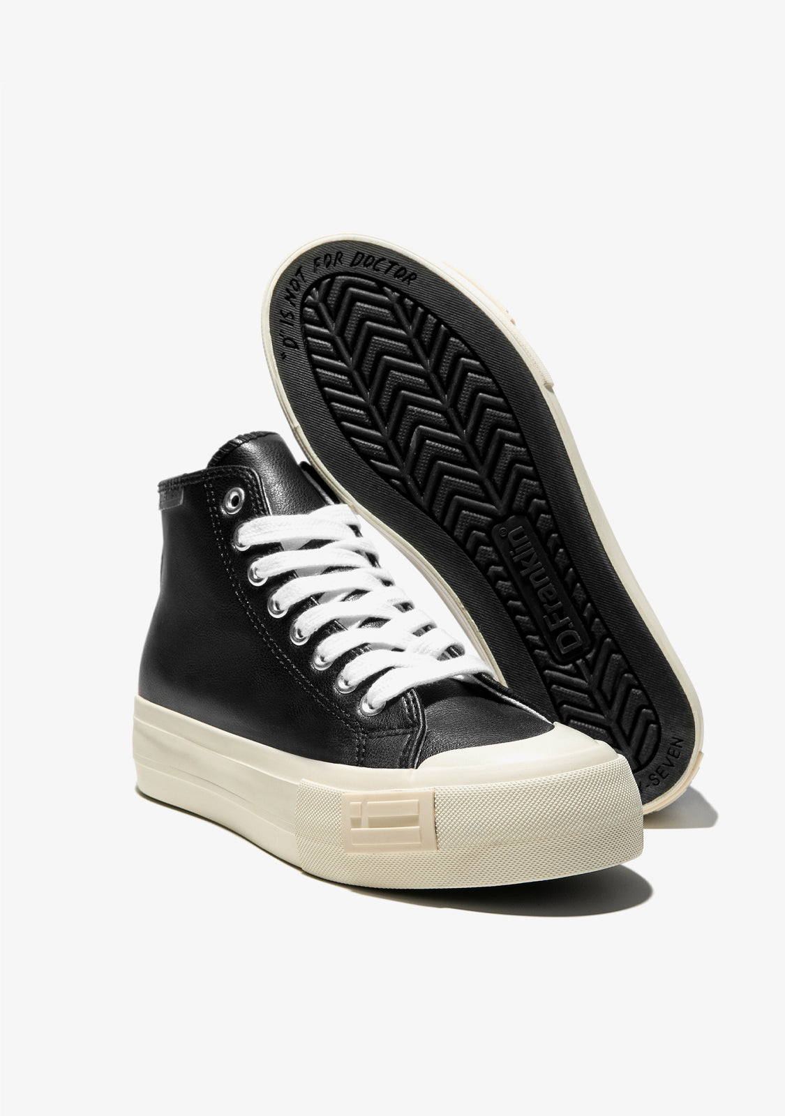 The low-cut design is constructed from black synthetic leather and microfibre. White monochrome 4cm rubber sole with D.Franklin emblem on the top of the shaft and brand lettering on the heel.