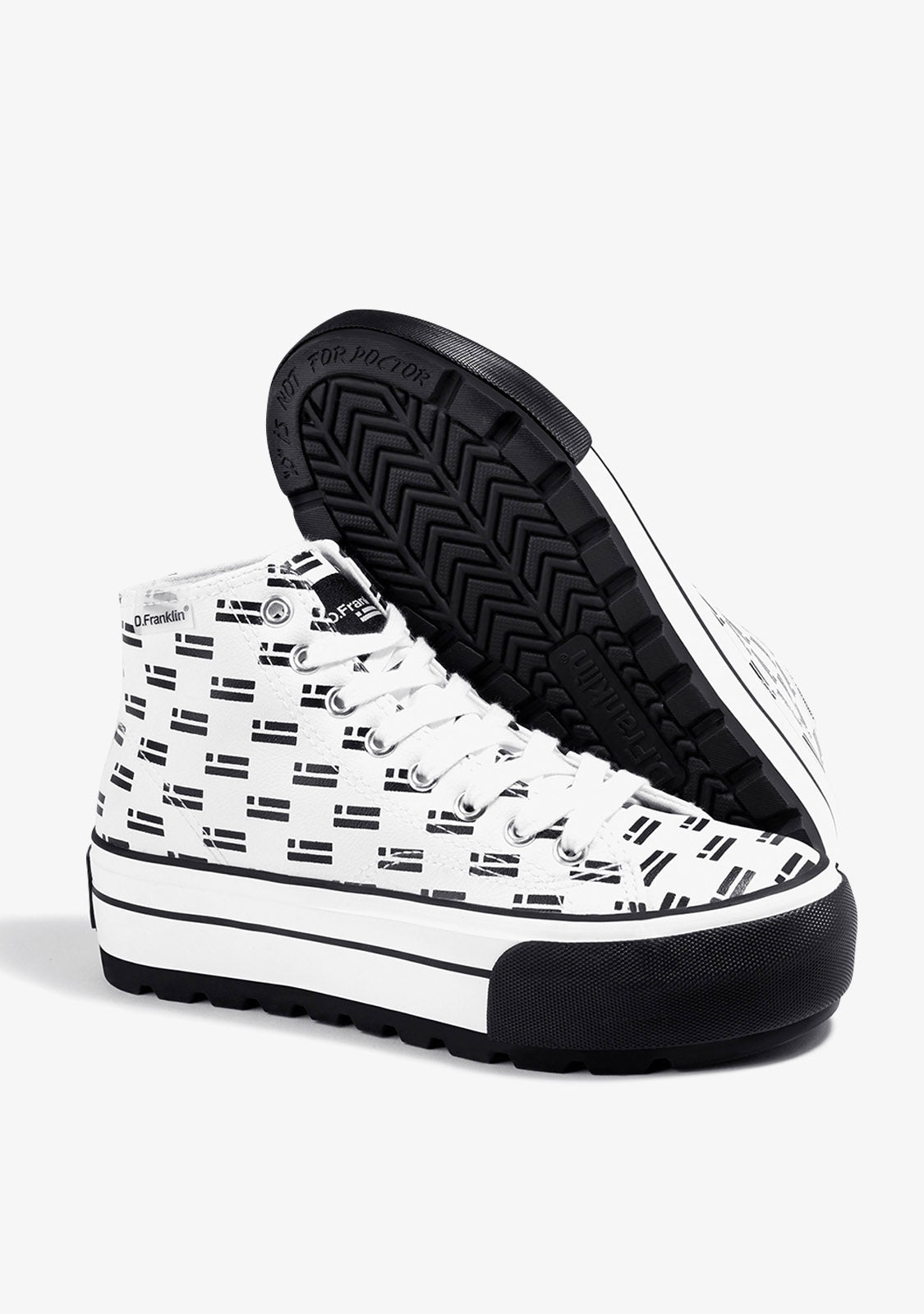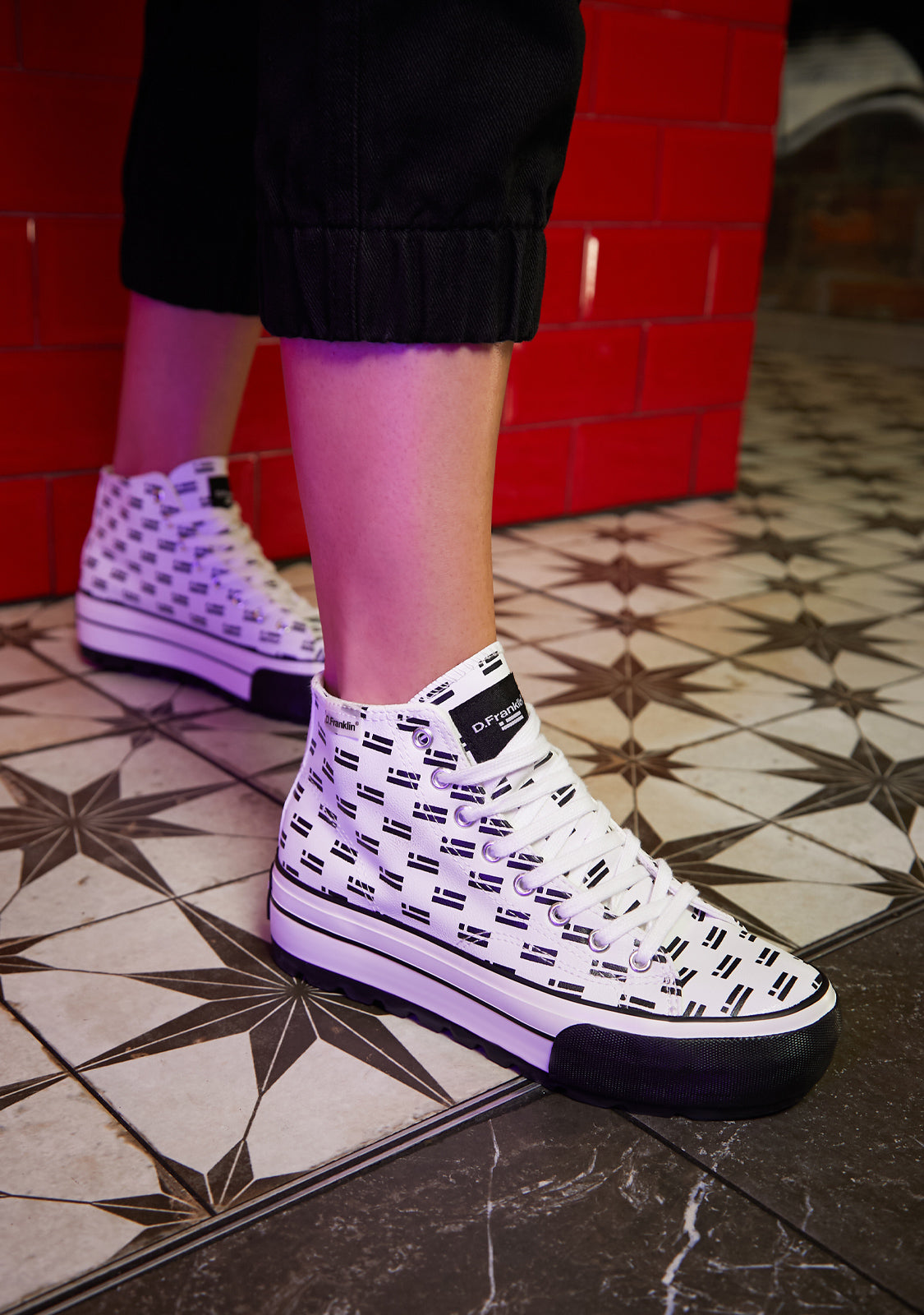 The One Way Platform edition is inspired by the most original prints, combined with the personality of its high sole and the most marked style of D.Franklin®. The One Way Platform DF Flag White are the perfect Hi-top sneakers for all kinds of new roads. A street style model that combines current trends with original details of its materials.