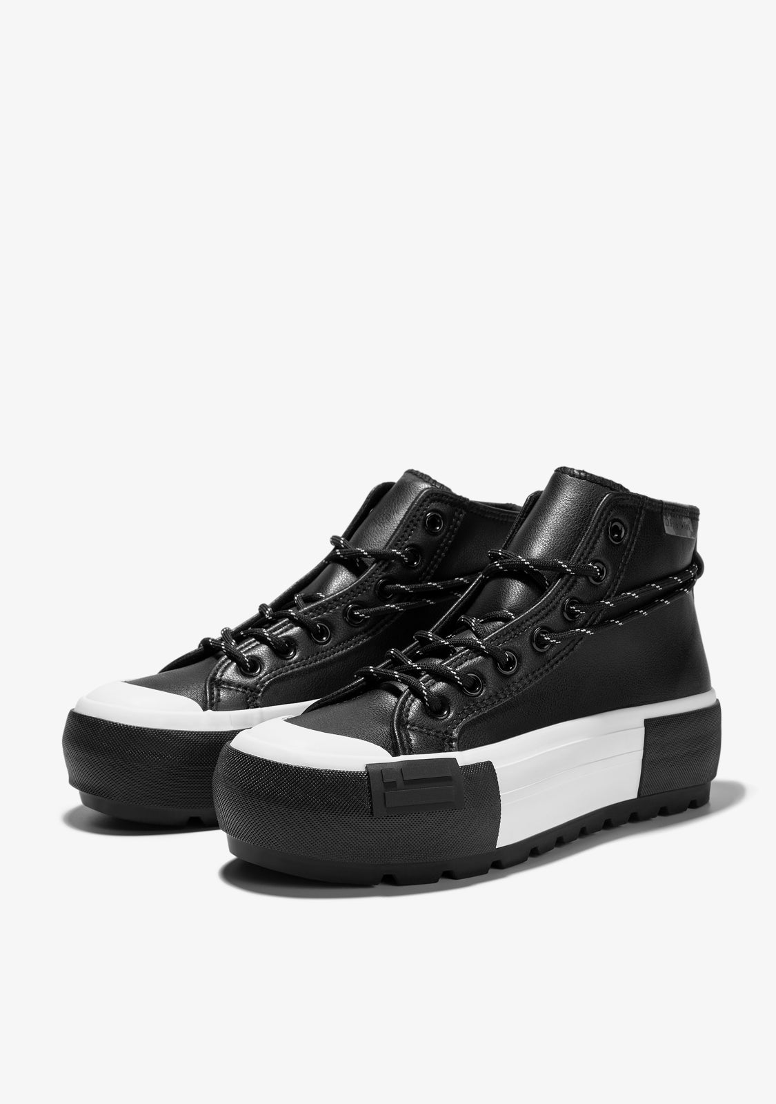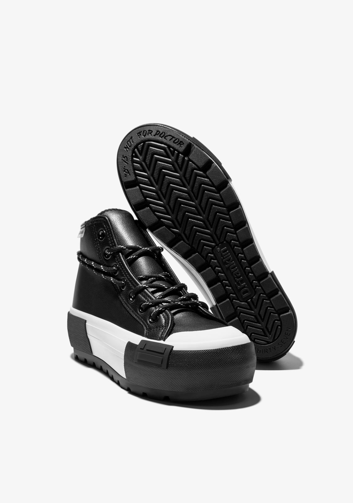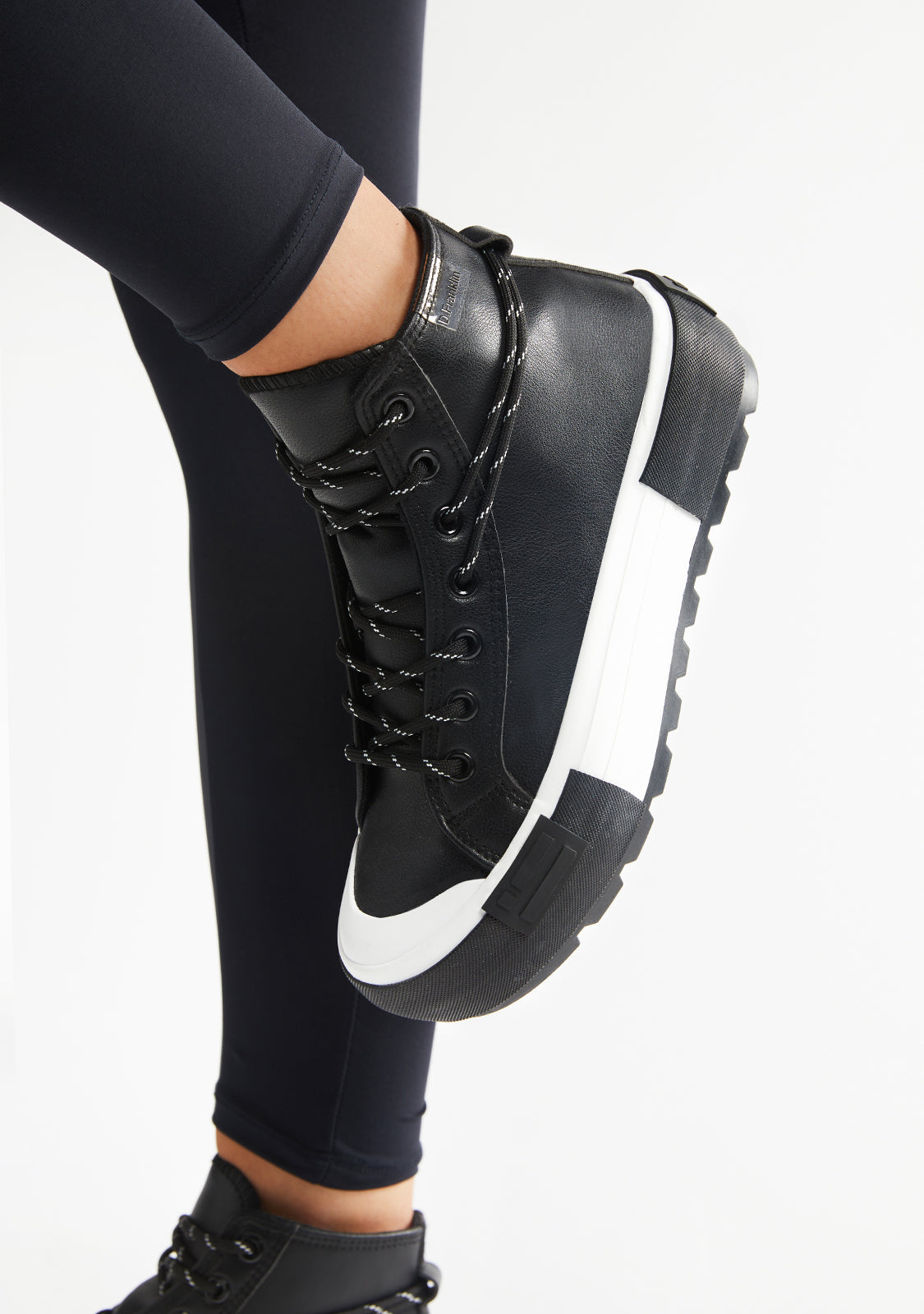 Our sneakers fuse comfort and warmth in a neutral-toned black and white bootie. Multi-position laces allow for urban aesthetics and a perfect fit. The 5cm sole features our emblem on both the heel and forefoot.
