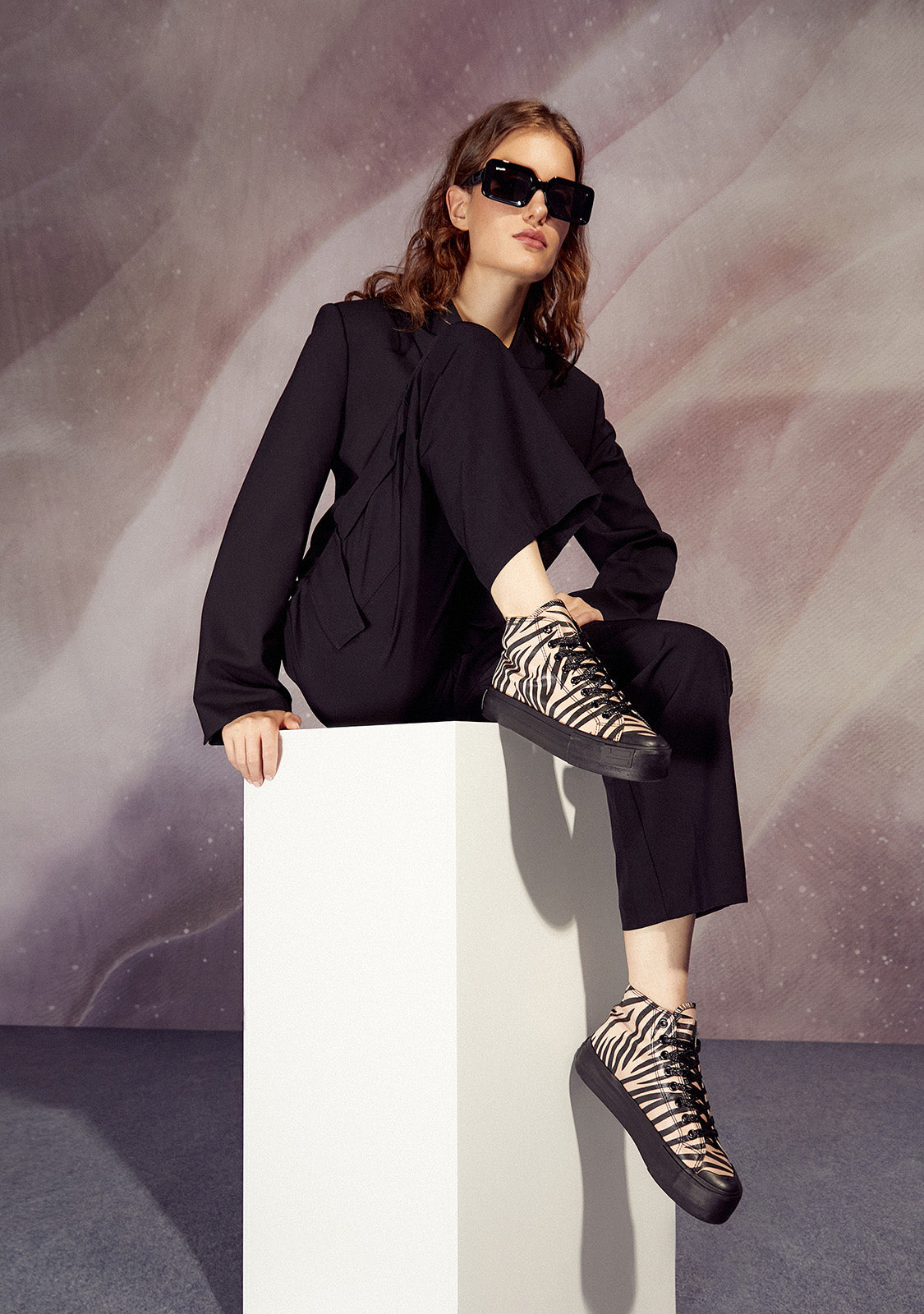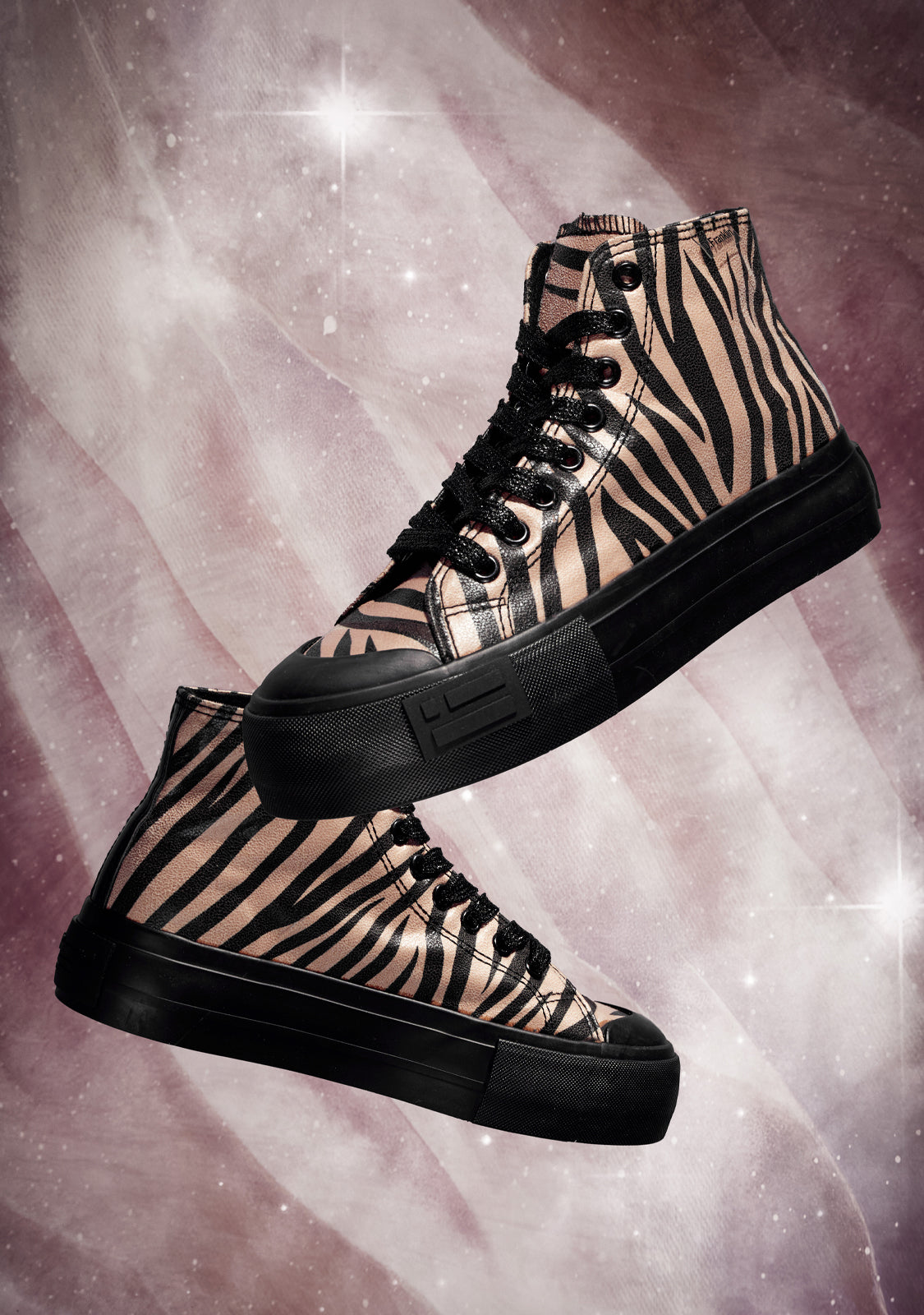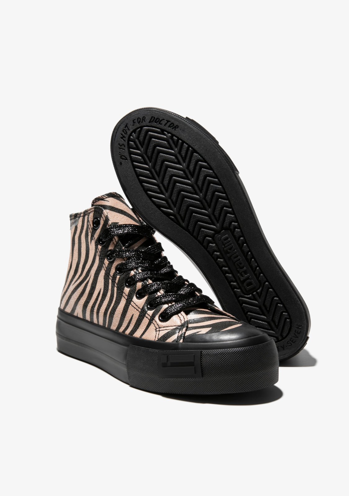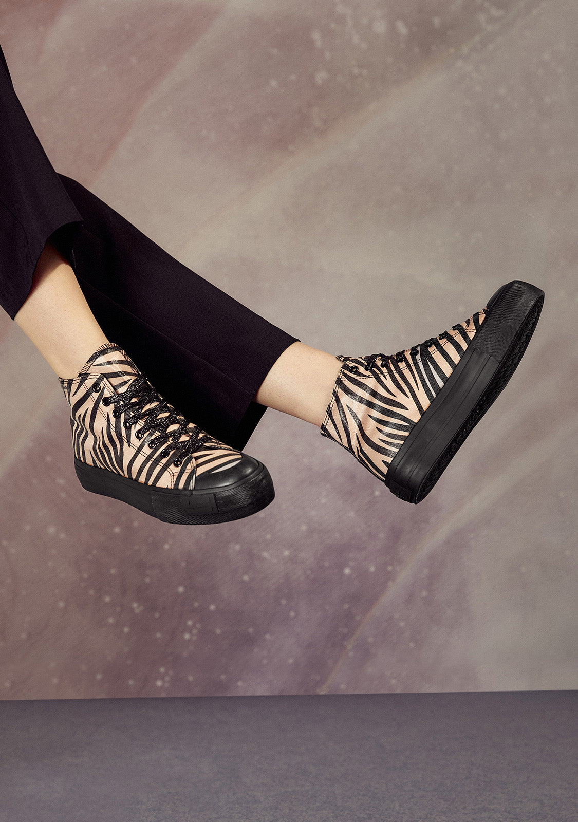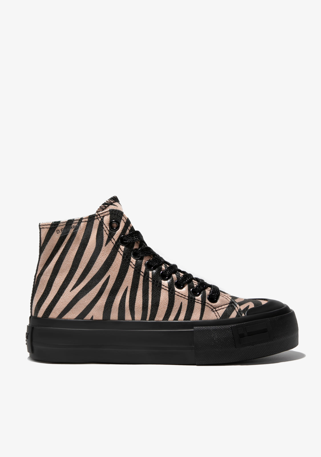 D.Franklin high-cut trainers. Sneakers with black and pink zebra print. A reminder that you can follow the trend in a unique way.