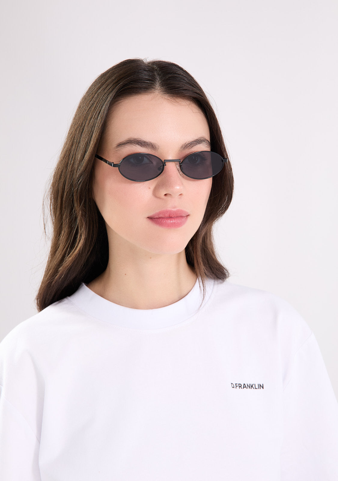 The Oval Legacy design features a metallic finish with a circular aesthetic. Its black-tone frame is paired with smoke anti-reflective lenses that allow a subtle view through and define the facial features. The front measures 135 mm, and the lens width is 51 mm. The temples are 140 mm long and incorporate our distinctive detailing. A retro yet minimalist piece to frame any outfit.