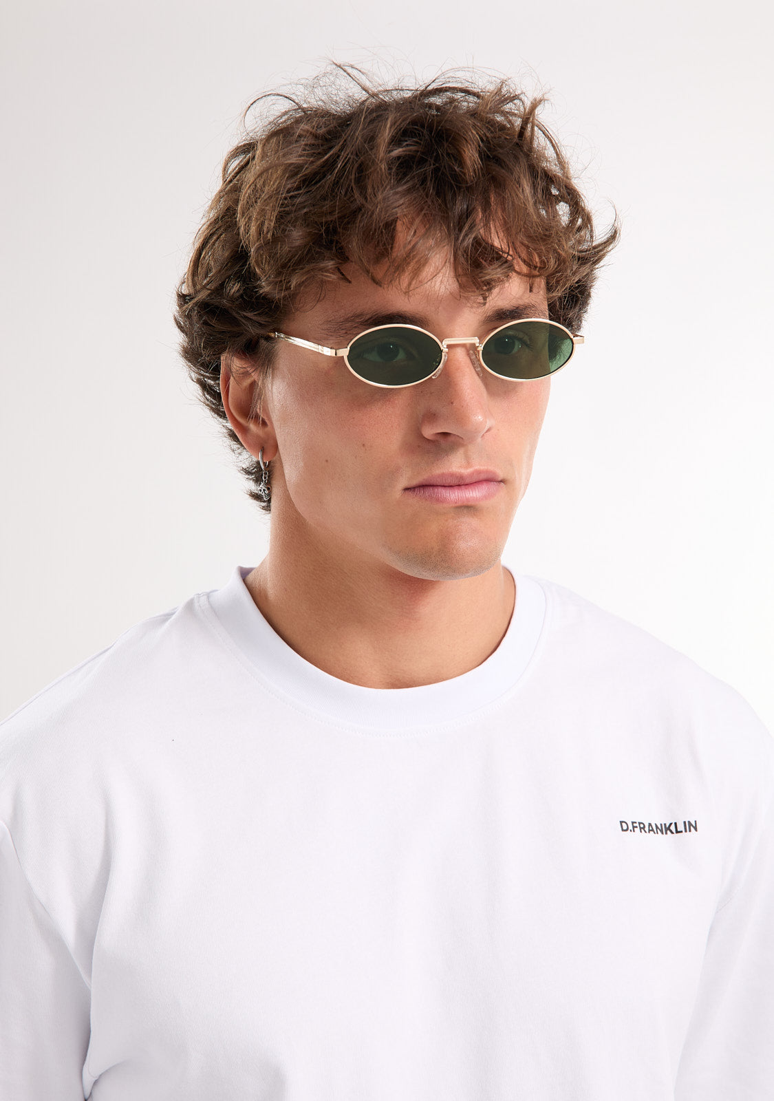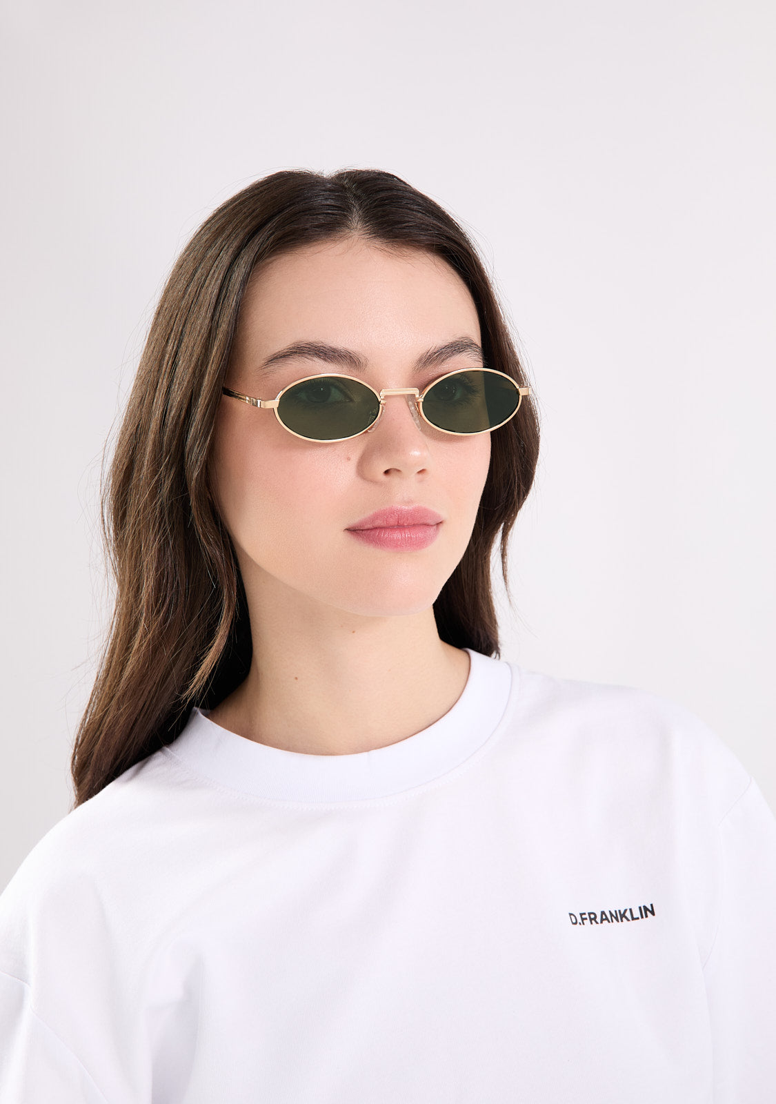 The Oval Legacy design features a metallic finish with a circular aesthetic. Its gold-tone frame is paired with G15 anti-reflective green lenses that allow a subtle view through and define the facial features. The front measures 135 mm, and the lens width is 51 mm. The temples are 140 mm long and incorporate our distinctive detailing. A retro yet minimalist piece to frame any outfit.