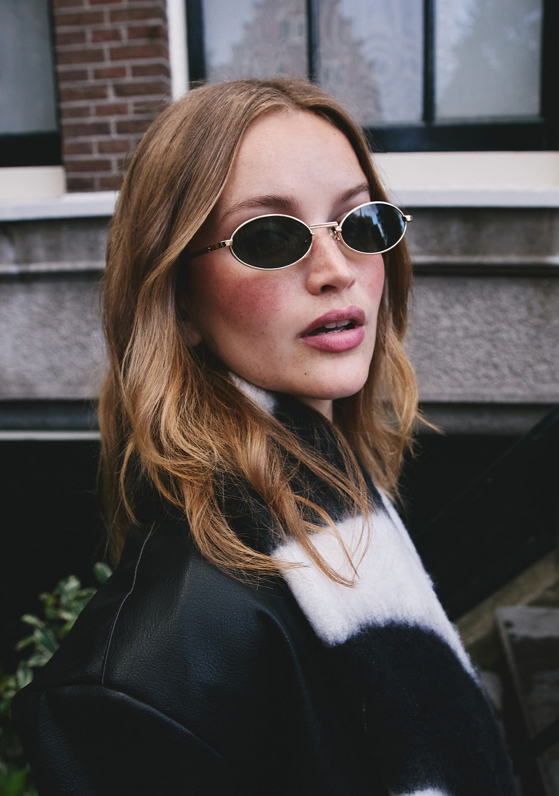 Translucent sunglasses with an oval design. The legacy of the most iconic pieces from the 70s is combined with a selection of modern details.