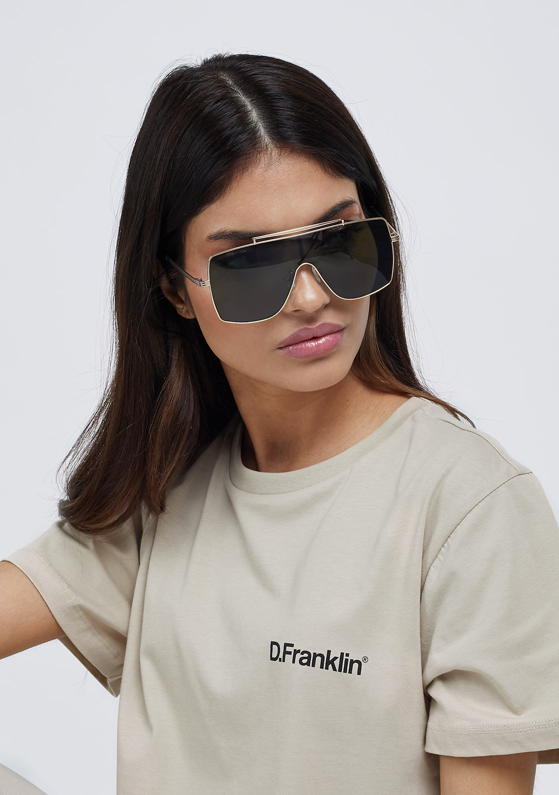 - Metallic logo on both temples