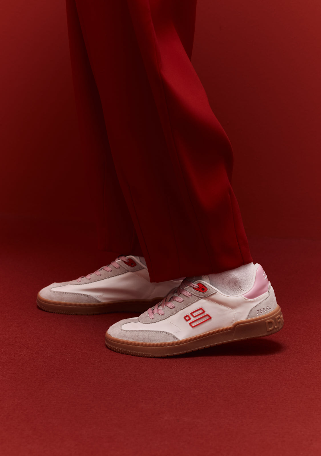 The intense red defines the design and is balanced with light-toned details that add contrast and visual depth. A clean silhouette with presence, created to elevate your daily looks with character and personality.