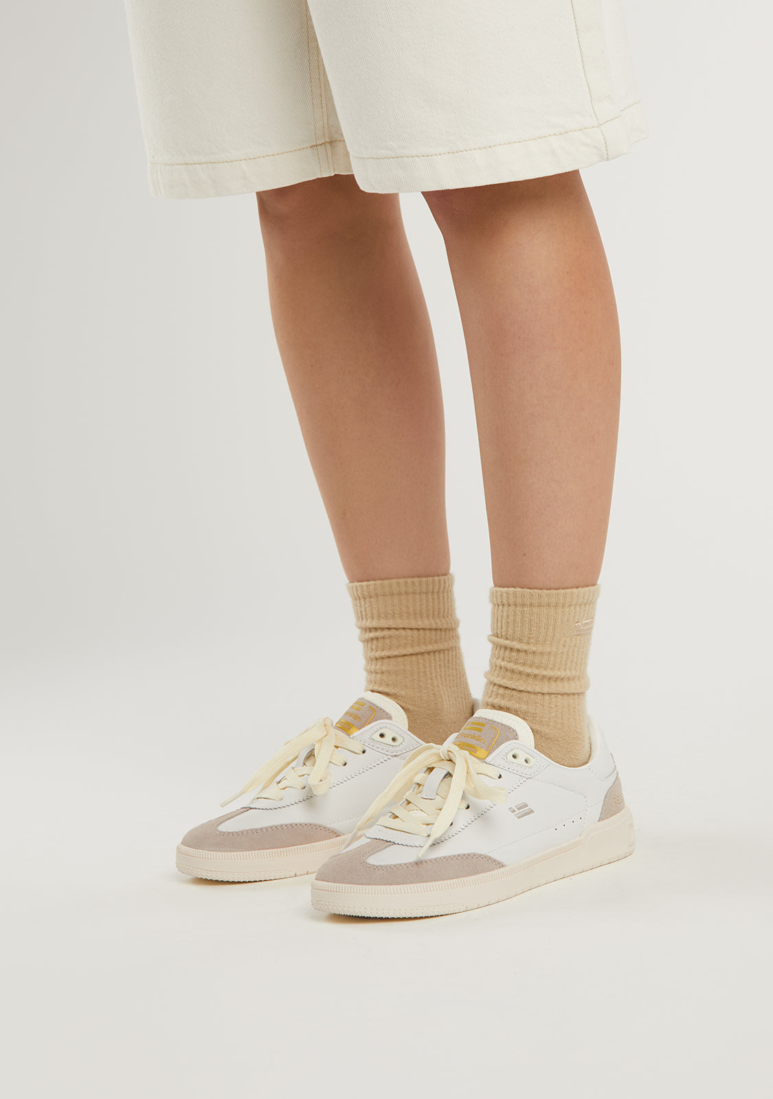 The Rebel Micro Full White trainers by D.Franklin are the perfect casual footwear for those seeking style and comfort in their daily lives. This model, with an elegant suede finish, combines versatility and modern design in a beige tone that easily adapts to any outfit.