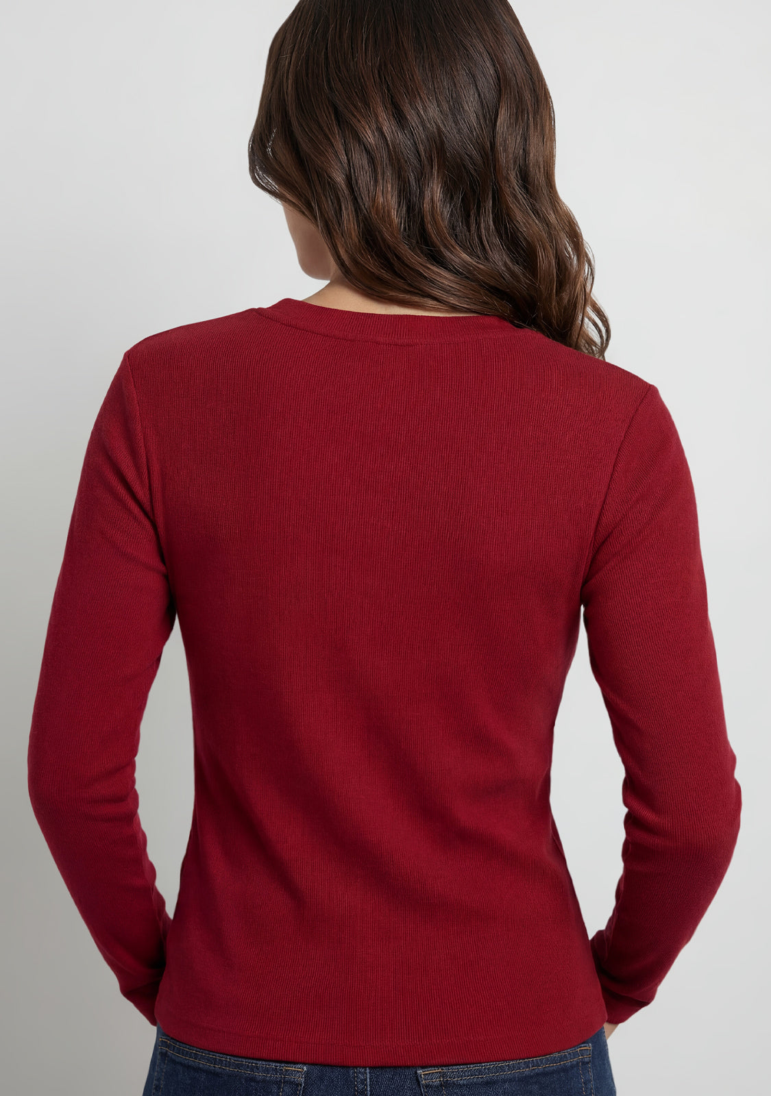 Rib Long Sleeve Top Burgundy