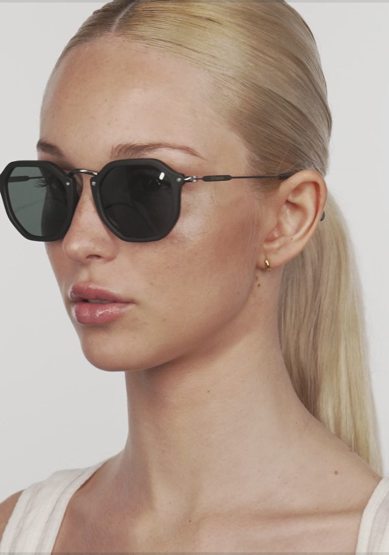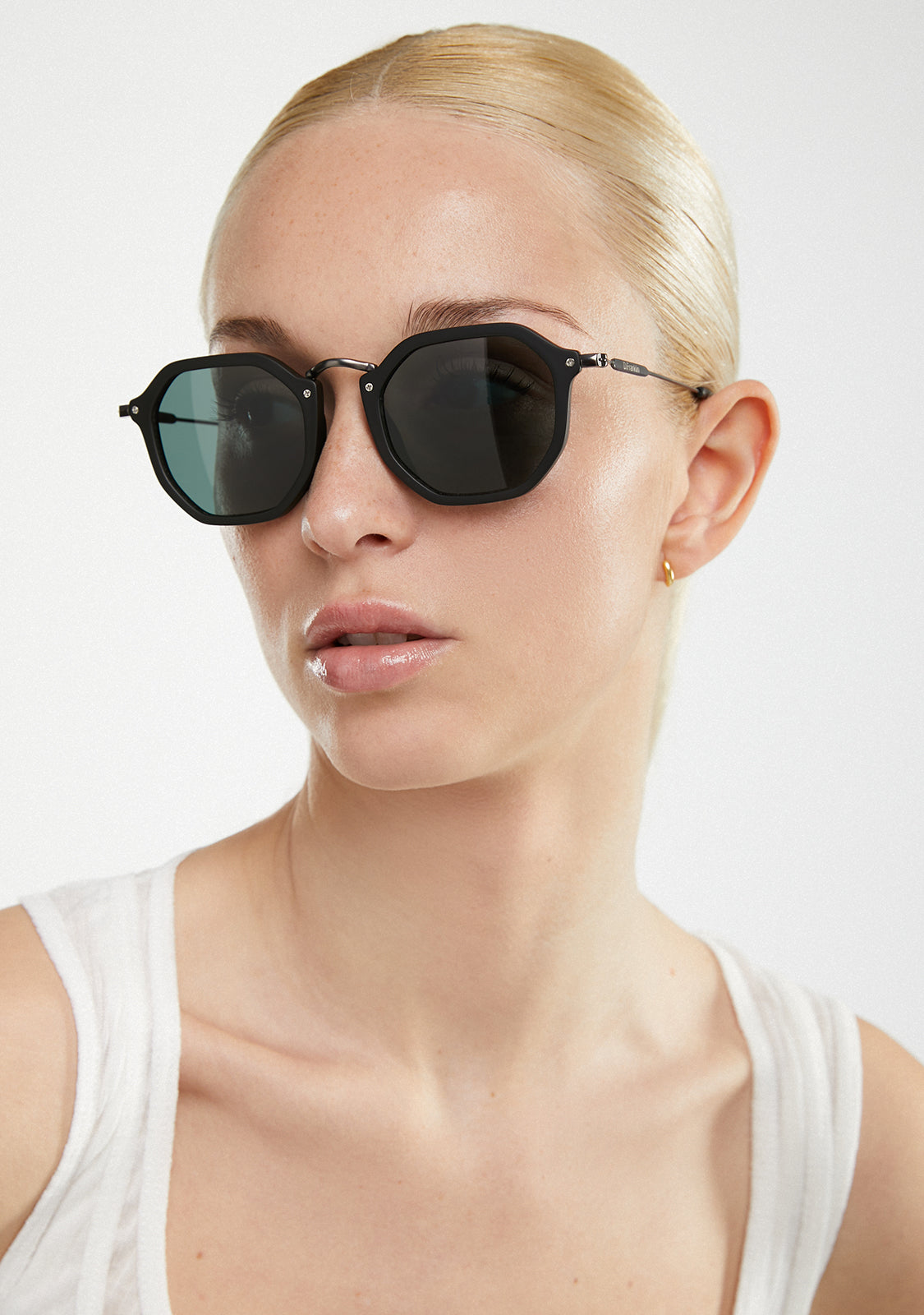 Polycarbonate lenses and a matte black octagonal contour reinforce the iconic style. It features our signature D.Franklin details: the logo engraved on both metal temples and our emblem on the right lens. With a 51mm lens width and 148mm front frame, these glasses enhance the features of any face. The stainless steel side arms are 145mm long.