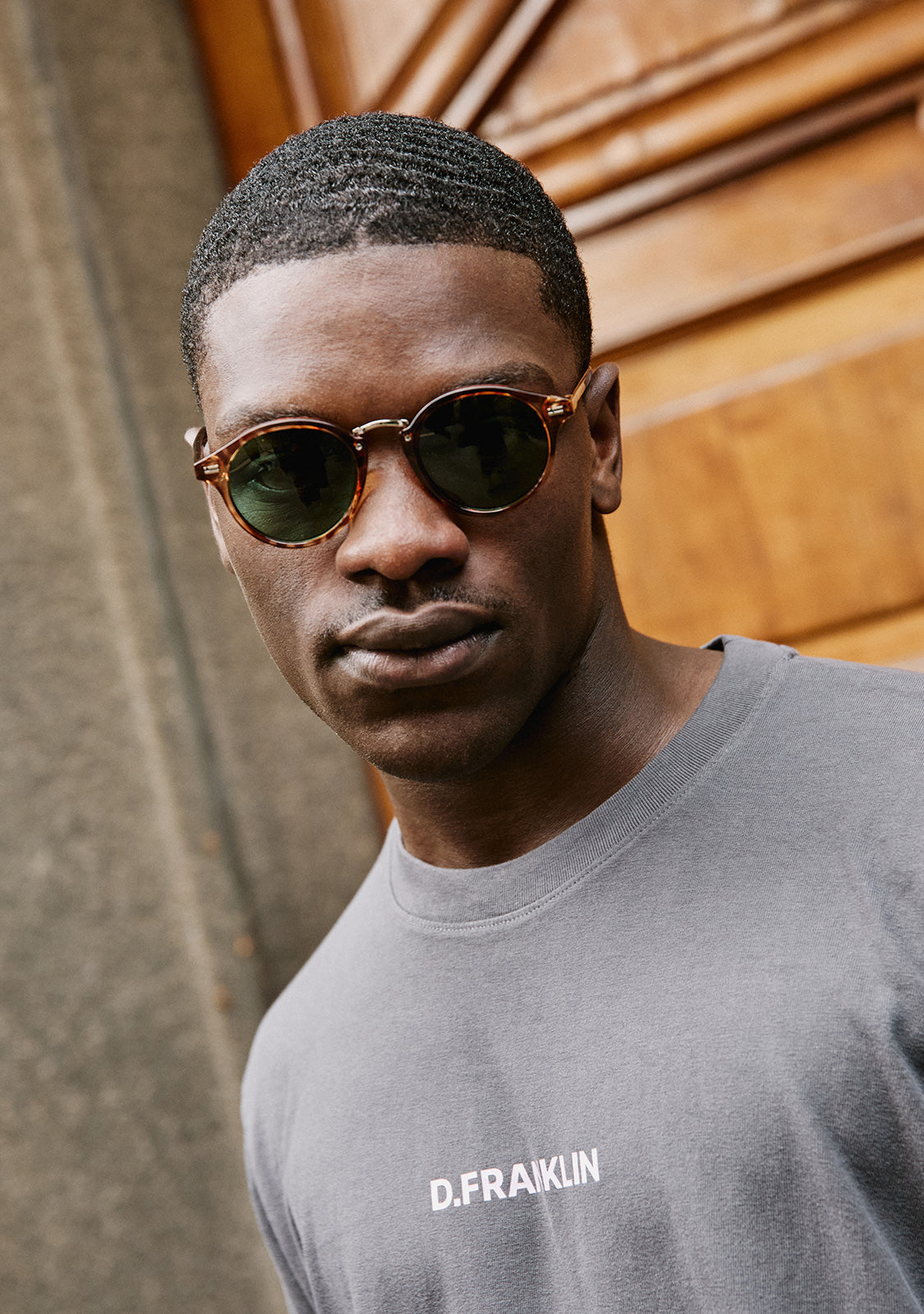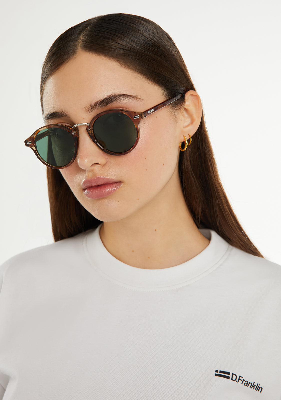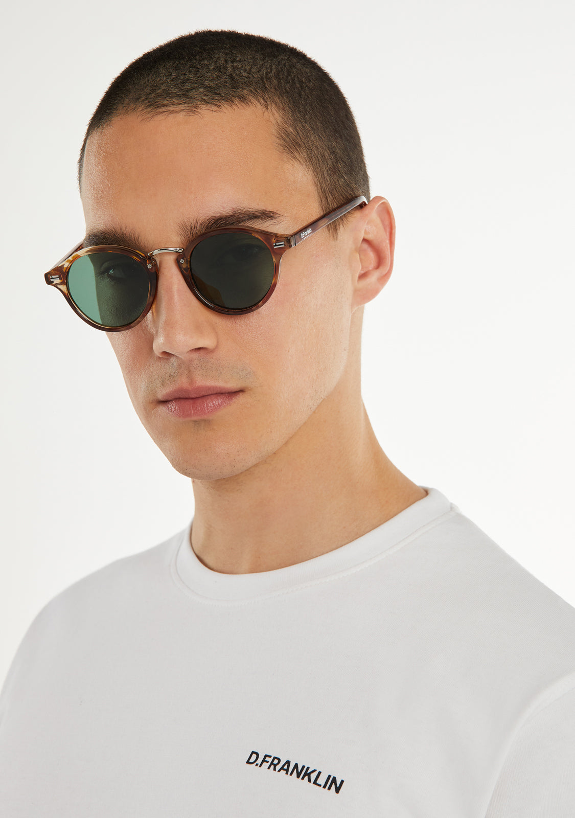 Rediscover our Roller silhouette with a new impeccably finished frame. This model is designed in tortoiseshell and features our signature D.Franklin details: logo engraved on both temples and our emblem on the right lens. The lens width is 49 mm and the front lens width is 140 mm. The side temples are 145 mm long.