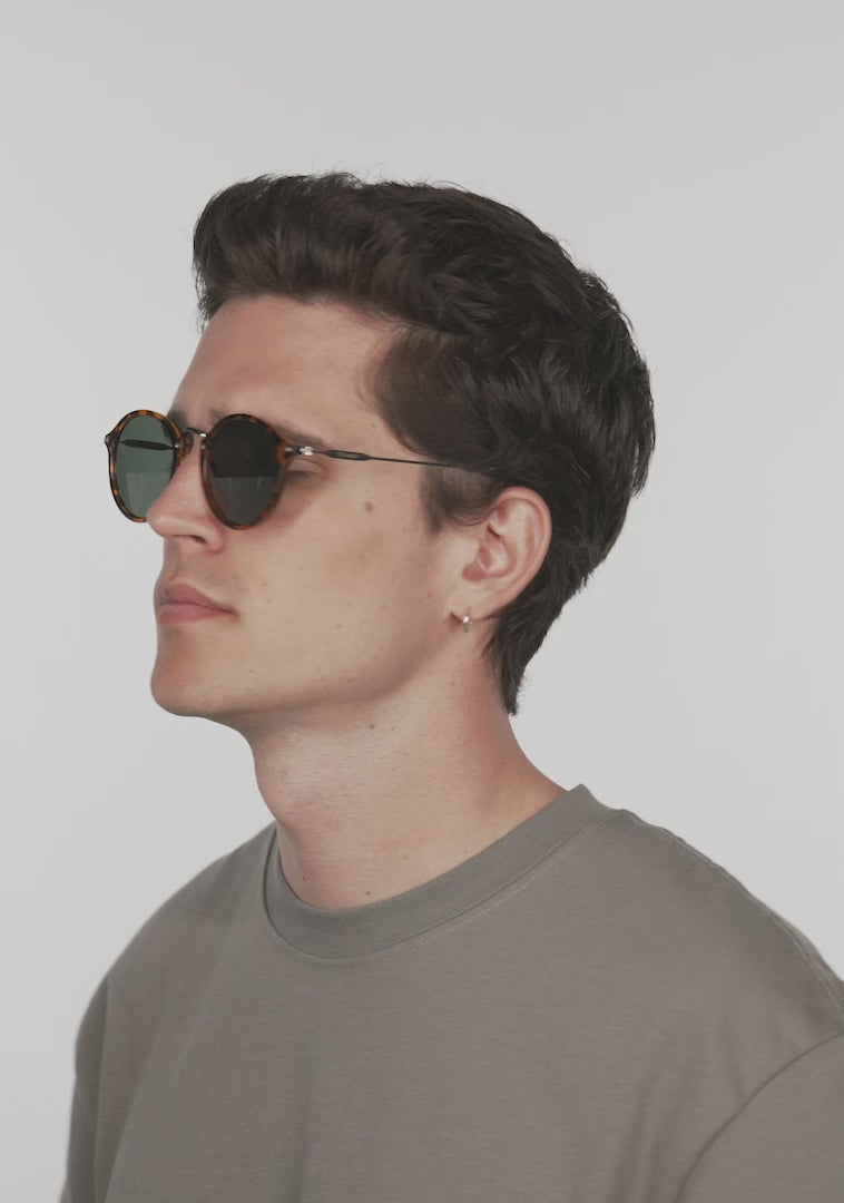 Rounded green tinted lenses and tortoiseshell frames reinforce the seventies aesthetic. It features our signature D.Franklin details: the logo engraved on both metal temples and our emblem on the right lens. With a lens width of 49mm and a 148mm front width frame, these glasses will flatter most faces. The side temples are 145 mm long.