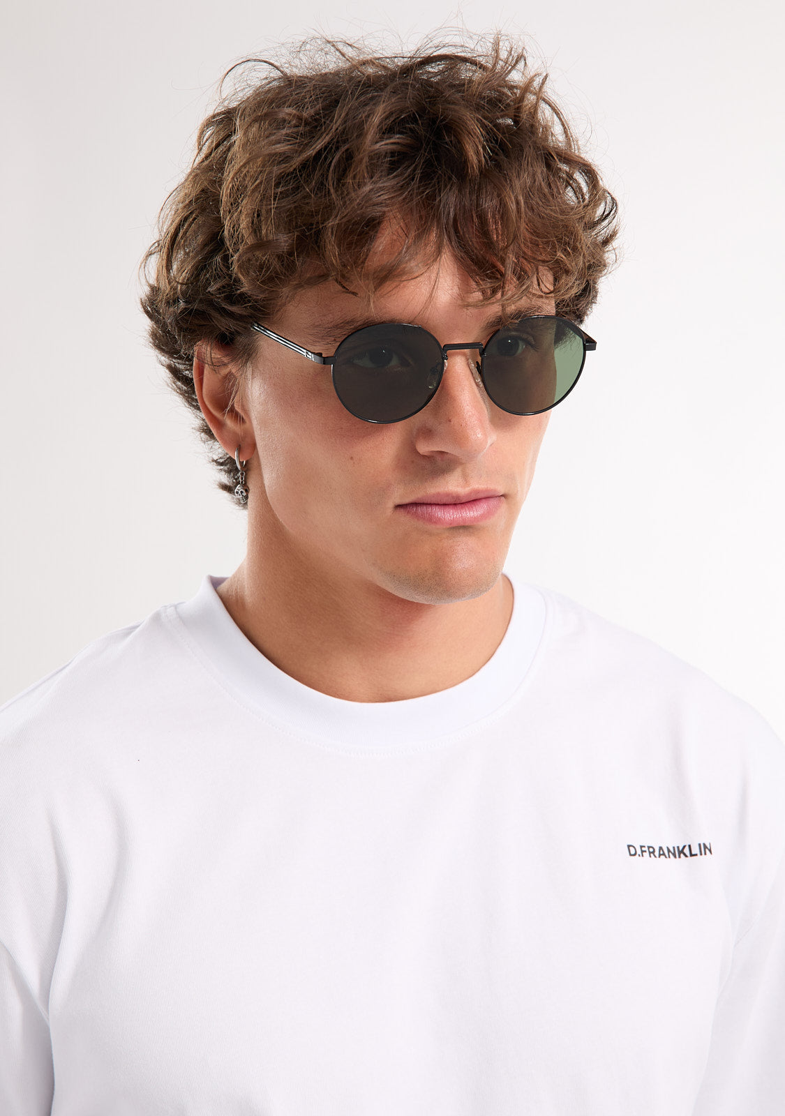 The Round Legacy design features a metallic finish with an oval aesthetic. Its black-tone frame is paired with G15 green anti-reflective lenses that allow a subtle view through and define the facial features. The front measures 139 mm, and the lens width is 52 mm. The temples are 140 mm long and incorporate our distinctive detailing. A retro yet minimalist piece to frame any outfit.