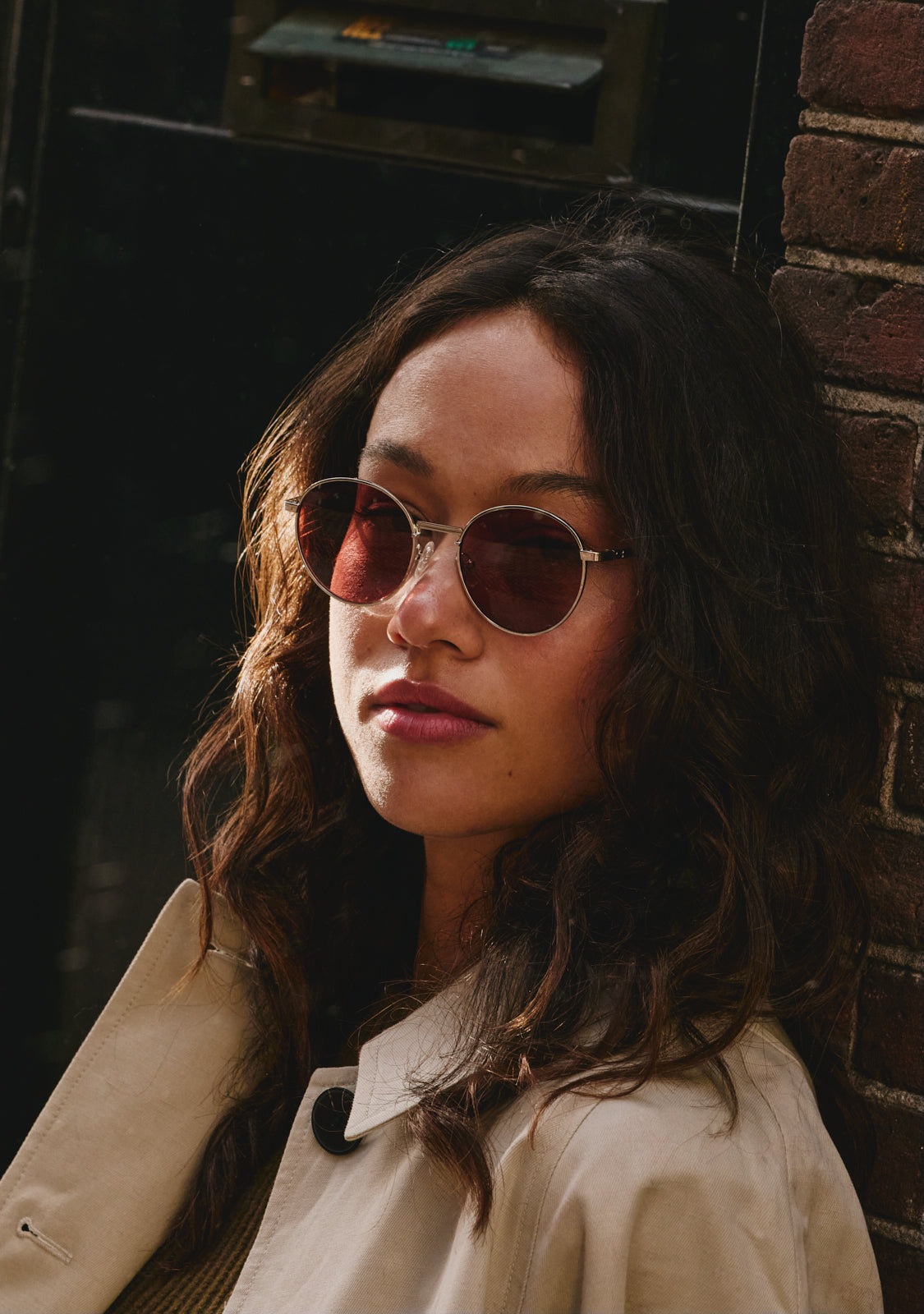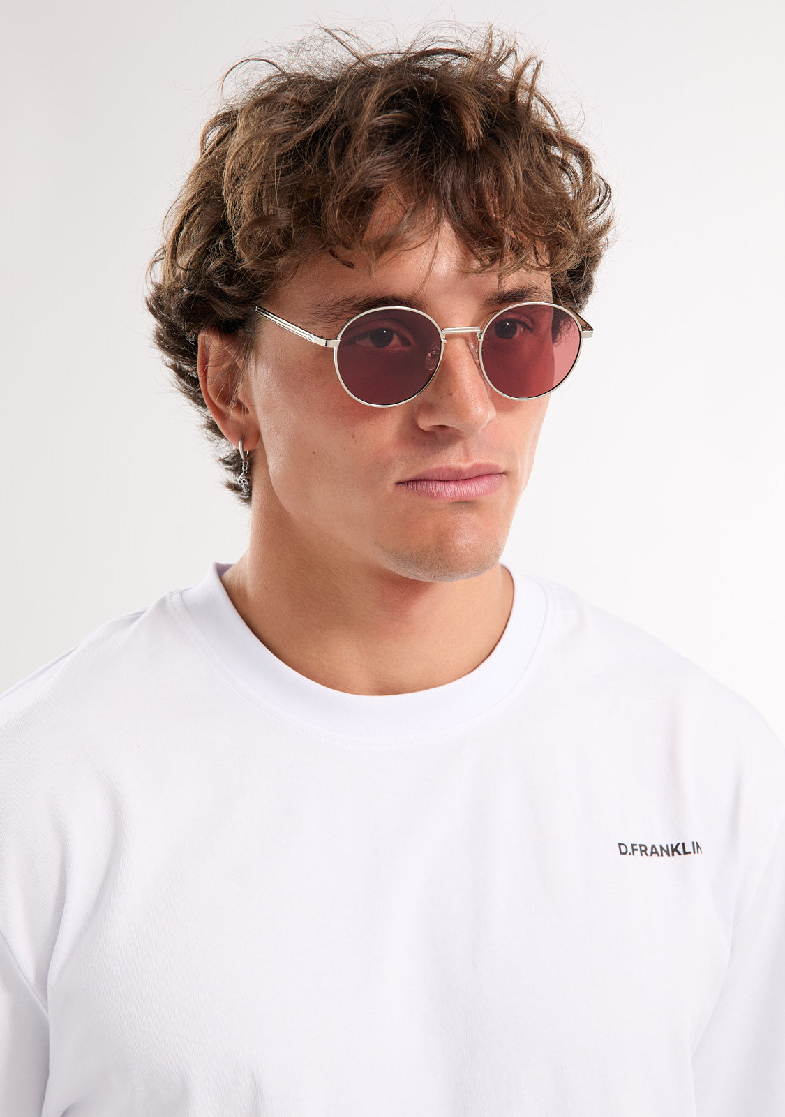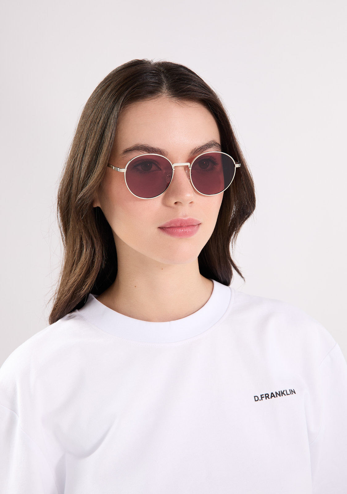 The Round Legacy design features a metallic finish with an oval aesthetic. Its silver-tone frame is paired with red anti-reflective lenses that allow a subtle view through and define the facial features. The front measures 139 mm, and the lens width is 52 mm. The temples are 140 mm long and incorporate our distinctive detailing. A retro yet minimalist piece to frame any outfit.
