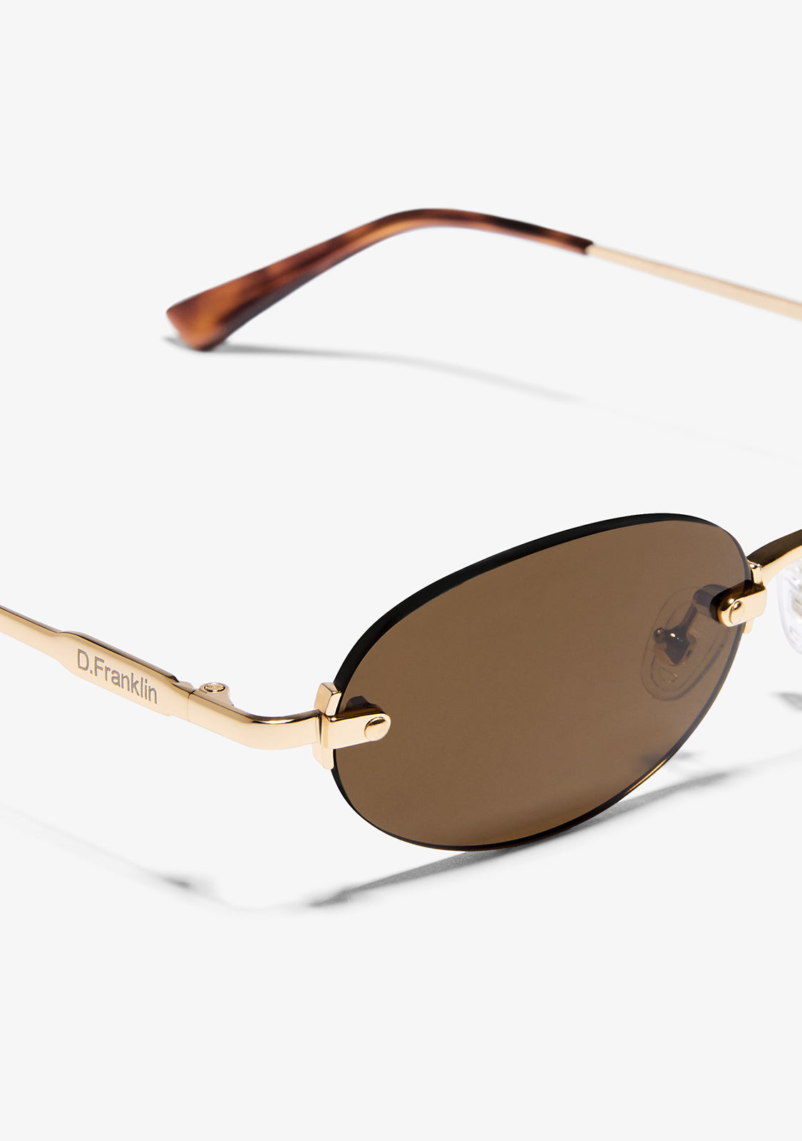 The Smith Oval by D.Franklin reinterprets the oval silhouette with a contemporary twist. Its shiny gold metal frame adds lightness and luminosity, while the pink gradient lenses add an original touch that turns any look into a true style statement.