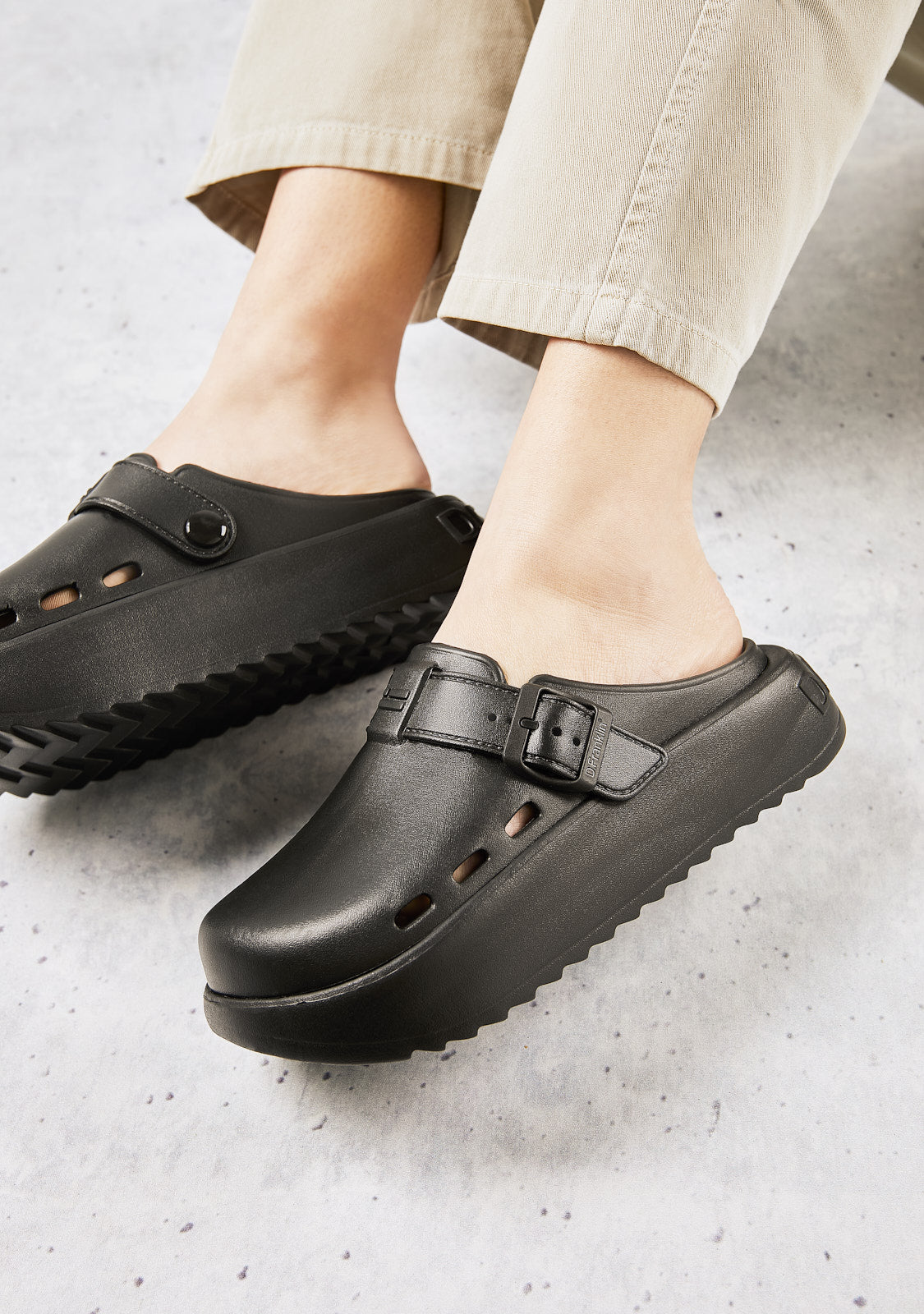 Double-height sole designed for a comfortable, durable and slip-resistant sole.