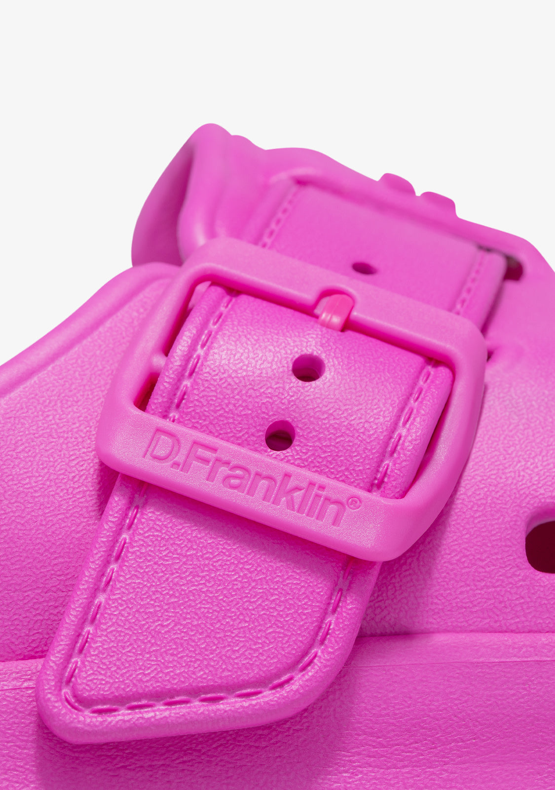 D.Franklin clog with double height. We raise the bar for a summer icon. To redefine the swimwear aesthetic.