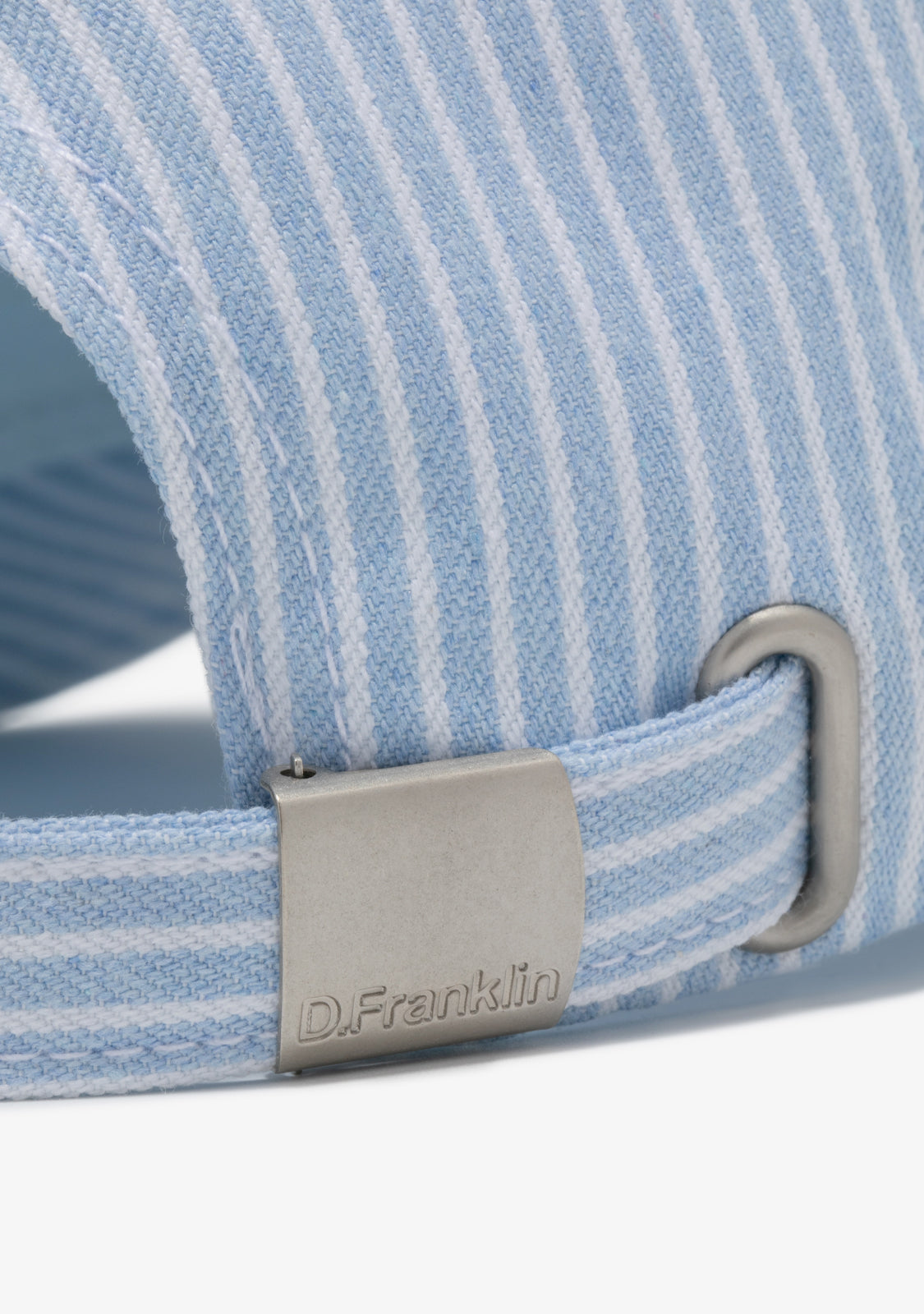 The Stripes Baseball Cap Denim by D.Franklin is a unisex cap in a light denim-blue colour with a subtle pinstripe pattern. Made from 100% cotton, it’s lightweight, breathable, and comfortable for everyday use.