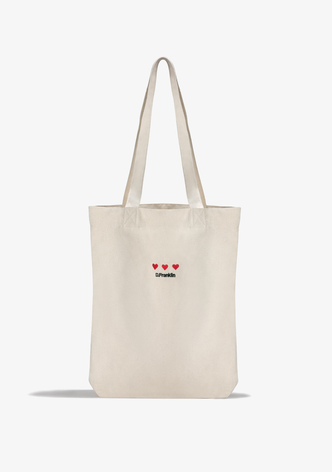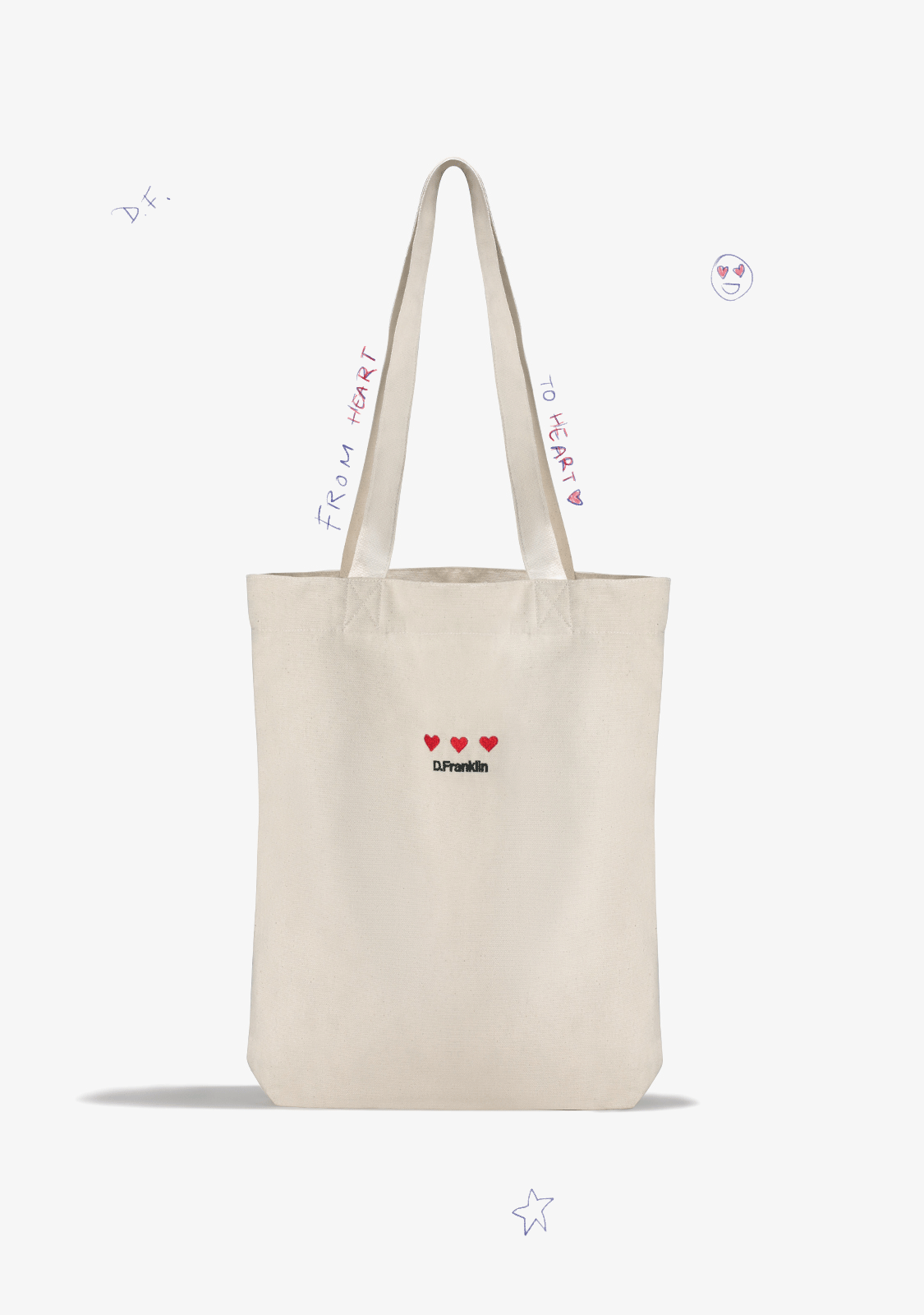 Tote bag made from recycled cotton and finished with distinctive graphics from the From Heart To Heart collection. Spacious design with long handles and cross-body gusset.