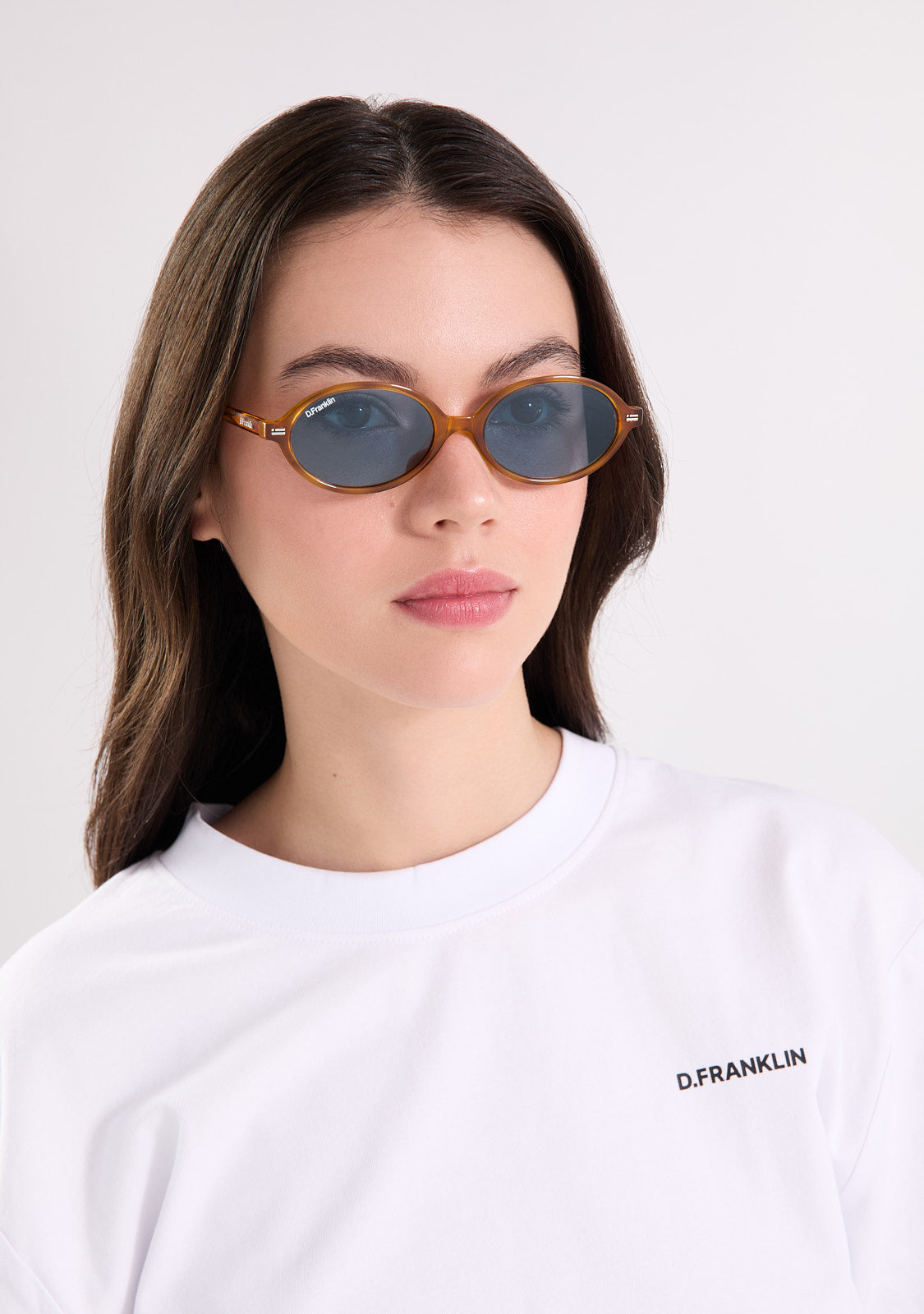Discover the Ultra Light Ellipse Amber Tort / Blue by D.Franklin, sunglasses designed for those who seek to combine style and functionality in a unique accessory. With a TR90 frame and bridge, an ultra-lightweight and durable material, along with acetate temples, they provide a sturdy structure and comfortable fit for extended wear.