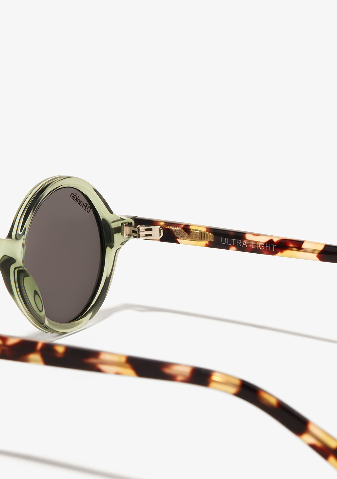 The Ultra Light Round Green / Black sunglasses by D.Franklin stand out for their minimalist design and superior functionality. With a TR90 front frame, these sunglasses combine lightweight construction and durability, making them ideal for extended wear. The acetate temples ensure a comfortable fit and an elegant finish.