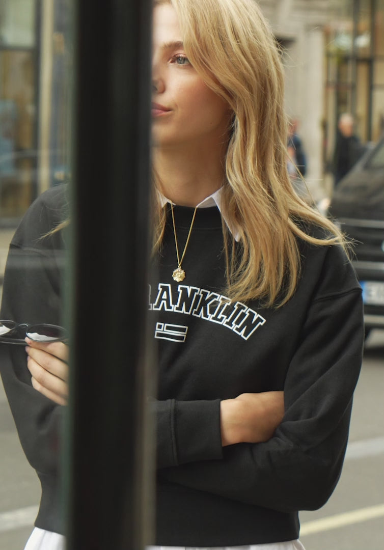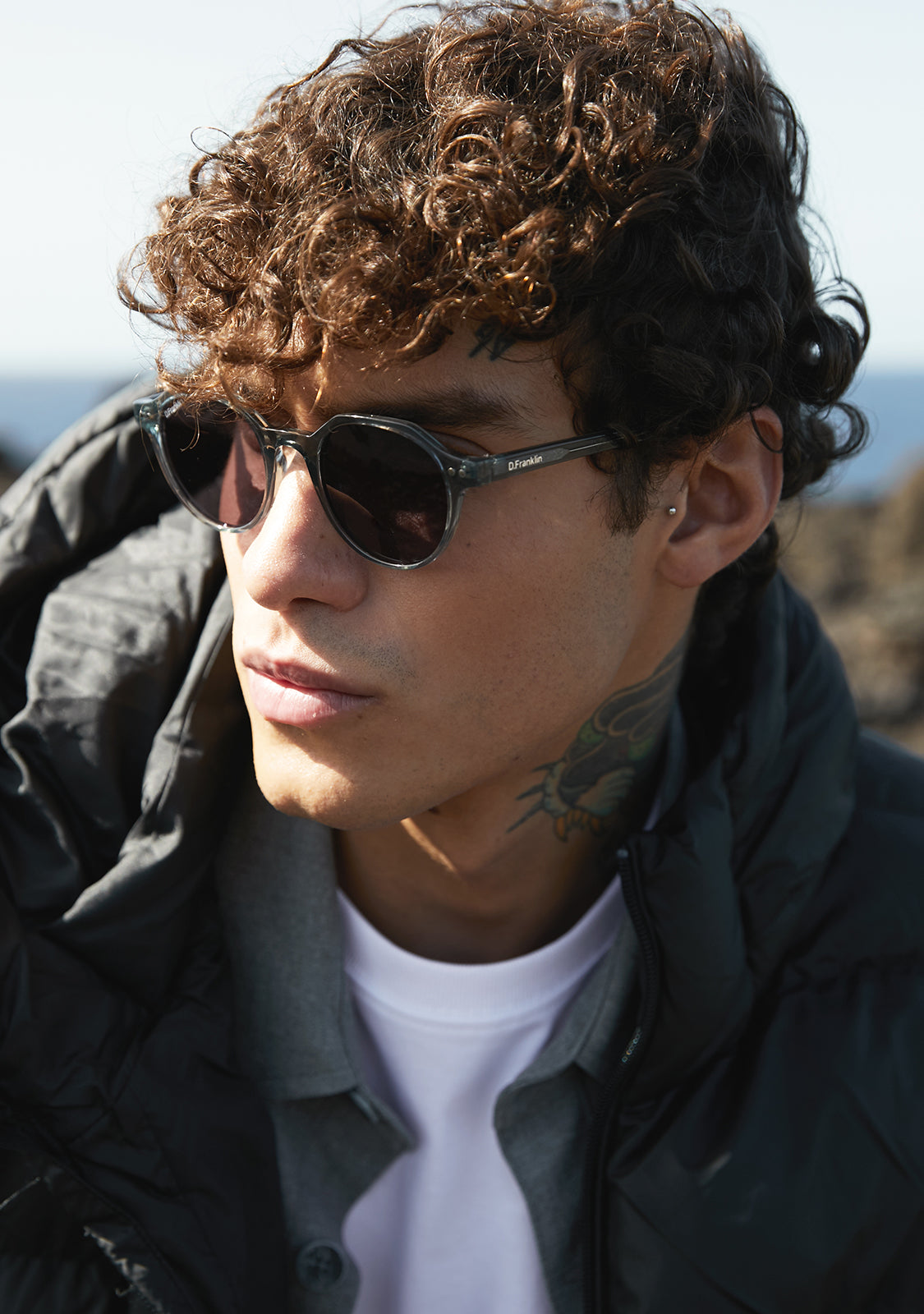 Its round polarized lenses tinted in black and TR90 gray frame highlight the timelessness of this model. It features our distinctive D.Franklin details: the logo engraved on both metal temples and our emblem on the right lens. With a lens width of 47 mm and a front frame of 138 mm, these glasses flatter most faces. The side temples have a length of 145 mm.
