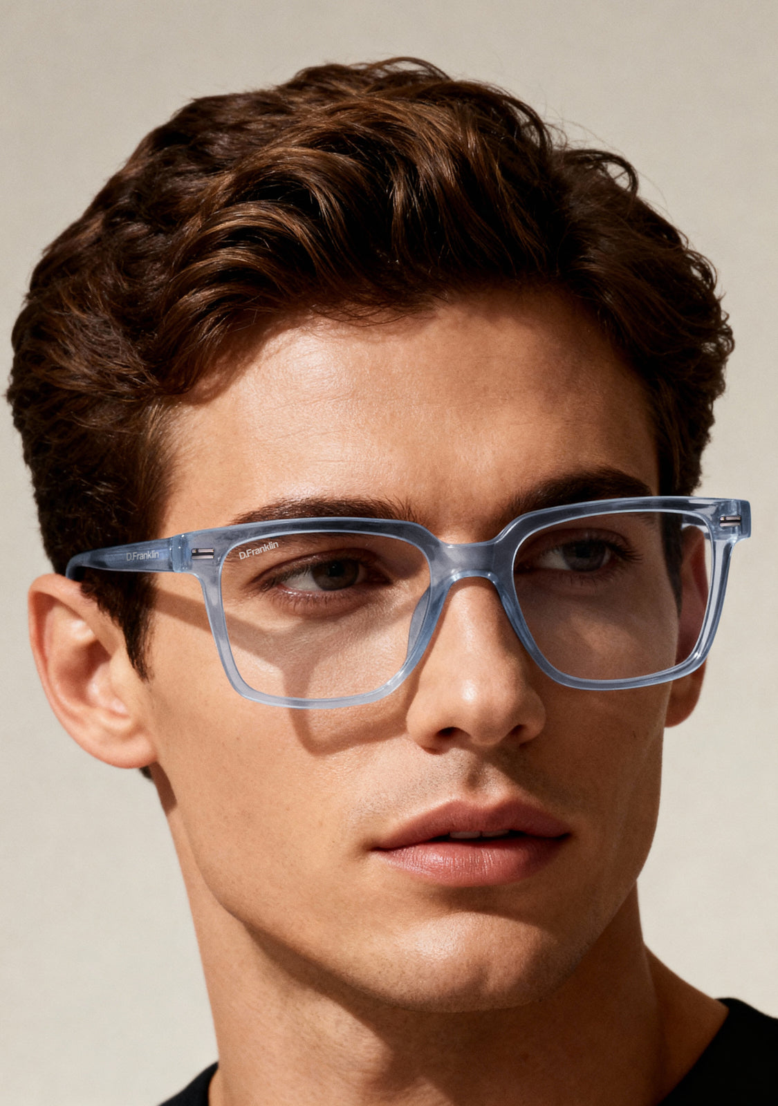 | Frame | Photochromic (clear → blue) · Injection acetate |