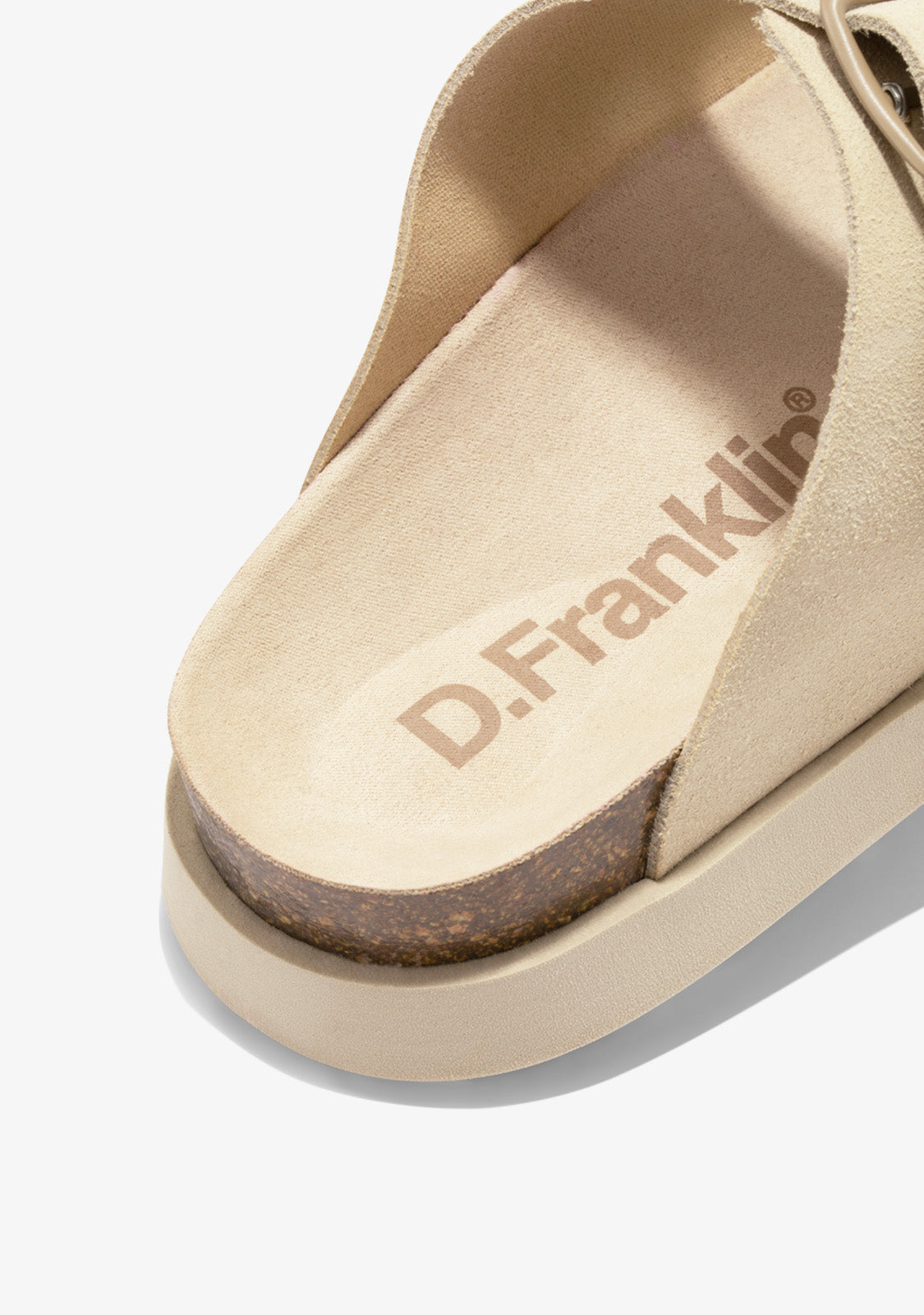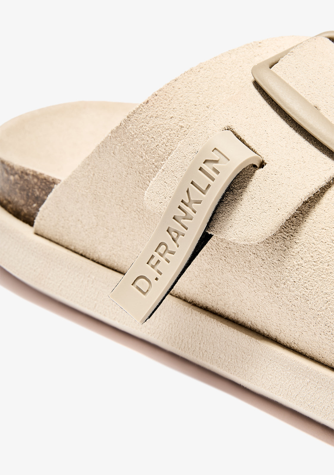 Discover the perfect combination of style and comfort with the Vibe Sandals Buckle Beige by D.Franklin. Designed with a cow suede upper, these sandals offer a soft touch and elegant finish, perfect for complementing any look.